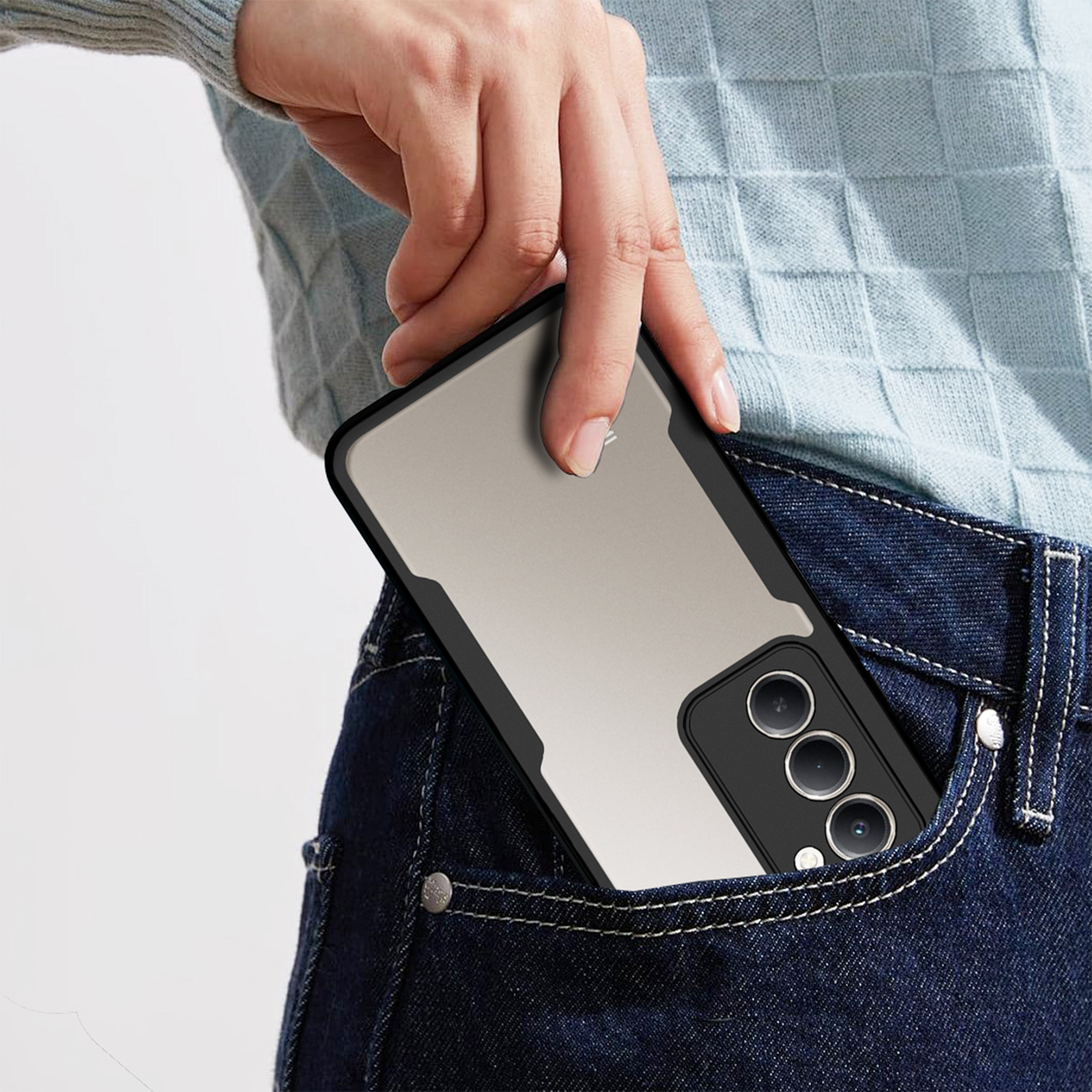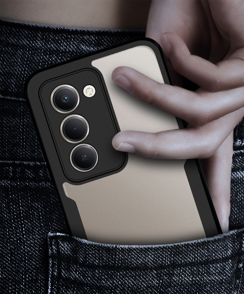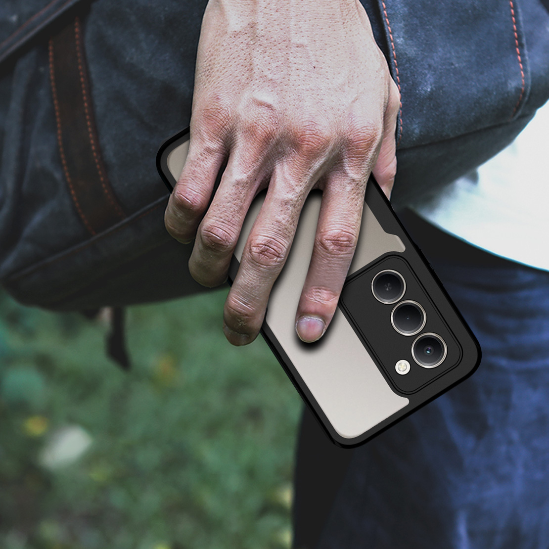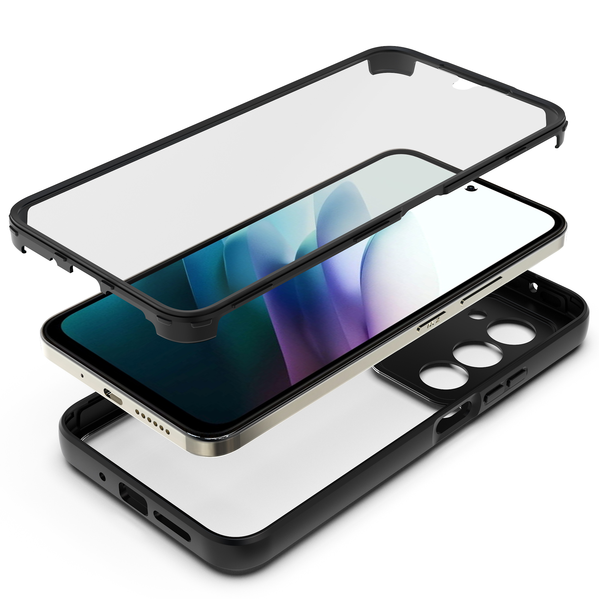Dwuelementowe etui 360° wyróżnia smukły, minimalistyczny design, który nie pogrubia telefonu i idealnie leży w dłoni. Tył tworzą przeźroczyste, twarde plecki, które eksponują oryginalny kolor urządzenia, otoczone eleganckimi czarnymi ramkami amortyzującymi uderzenia. Natomiast przedni panel z wbudowanym poliwęglanowym ekranem ochronnym zabezpiecza wyświetlacz. Precyzyjne wycięcia na porty, głośniki i aparat gwarantują komfort użytkowania na co dzień.