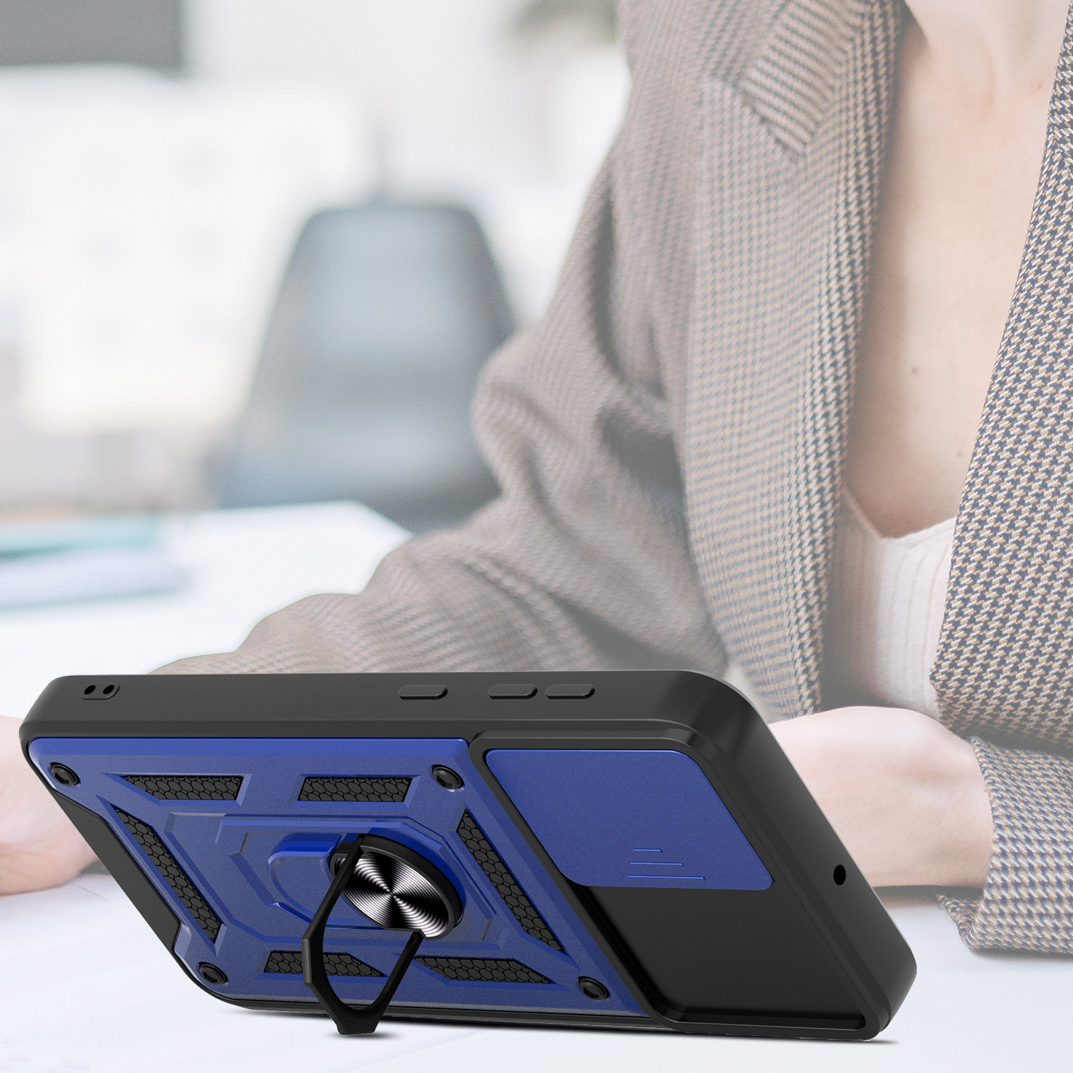 CAMSHIELD to etui, które zapewnia wysoki poziom ochrony połączony z nowoczesnym designem. Dwuwarstwowa konstrukcja z twardego poliwęglanu i elastycznego TPU to większa ochrona przed upadkami, zarysowaniami i codziennym zużyciem. Przesuwana osłona aparatu zabezpiecza soczewki przed uszkodzeniami i zabrudzeniami. Znajdujący się na pleckach metalowy ring z blaszką, pełni funkcję podstawki, uchwytu do wygodnego trzymania oraz mocowania do uchwytów magnetycznych w samochodzie. Zintegrowane przyciski chronią newralgiczne elementy telefonu, zachowując jednocześnie pełną funkcjonalność i wygodę użytkowania. Dodatkowo etui posiada dwie małe dziurki, umożliwiające przyczepienie smyczy lub zawieszki. To praktyczne rozwiązanie, które sprawdzi się zarówno na co dzień, jak i podczas wycieczek czy podróży.