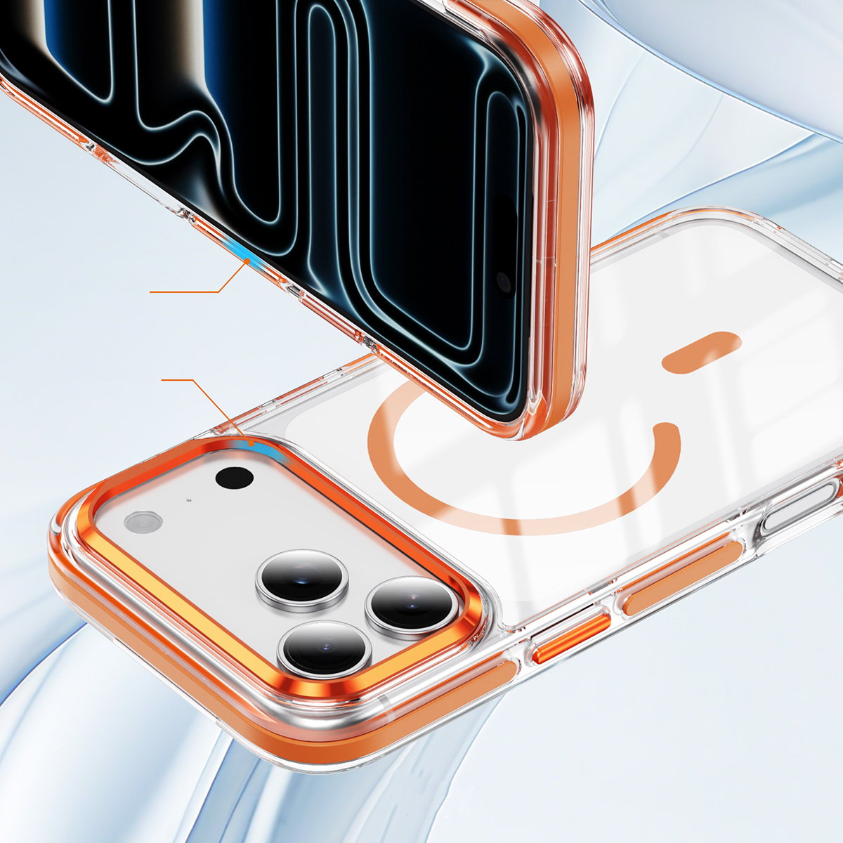 ETUI EXOGUARD CLEAR GLOW - APPLE IPHONE 17 PRO - ORANGE