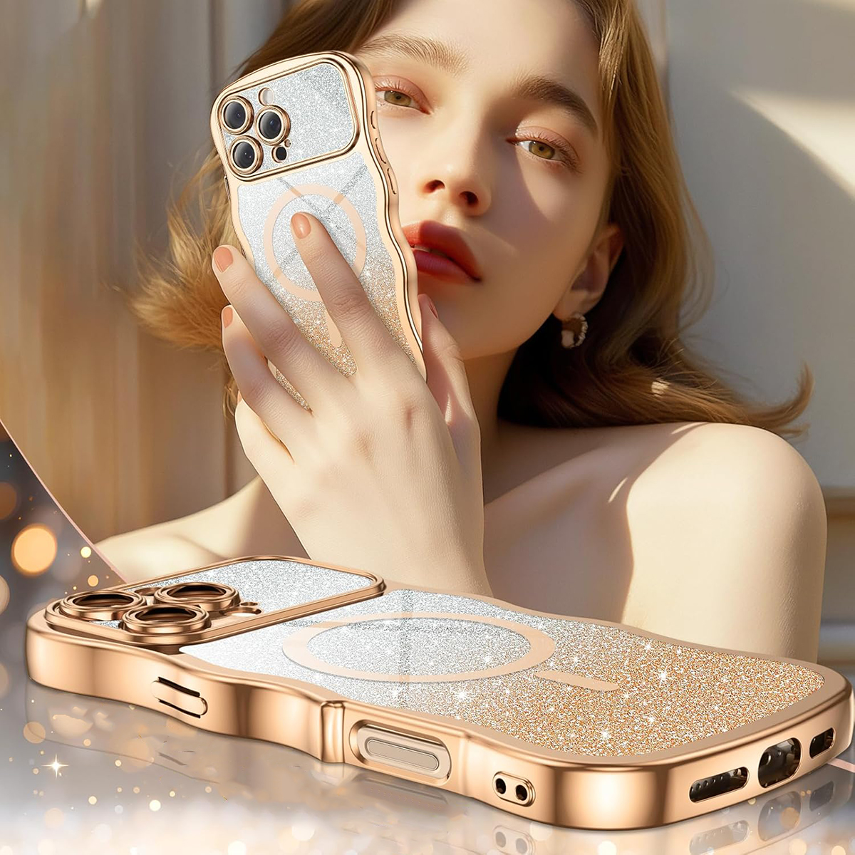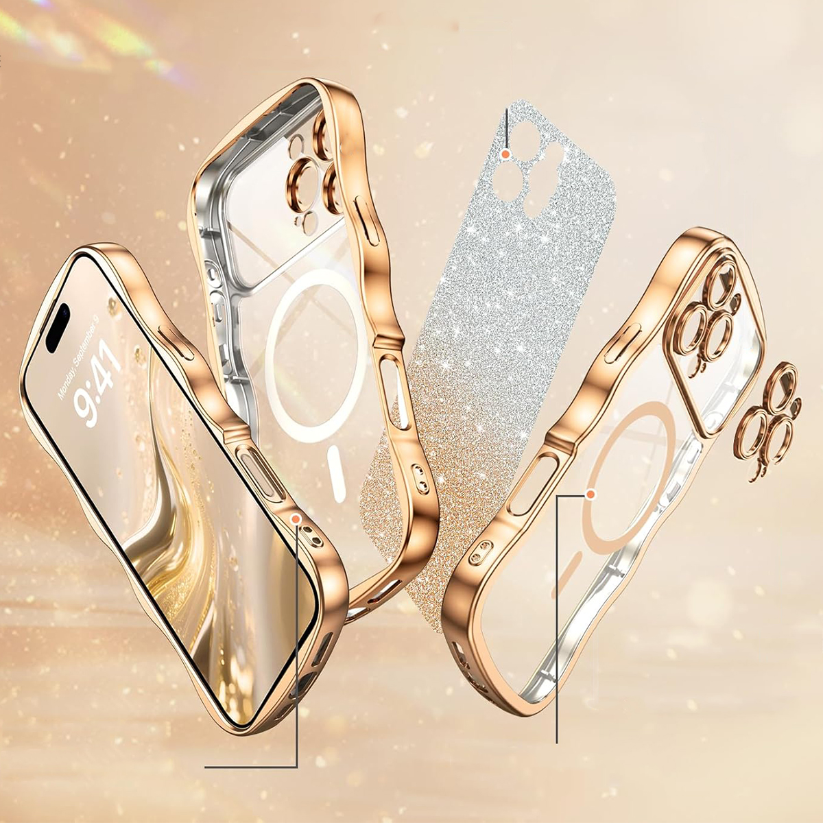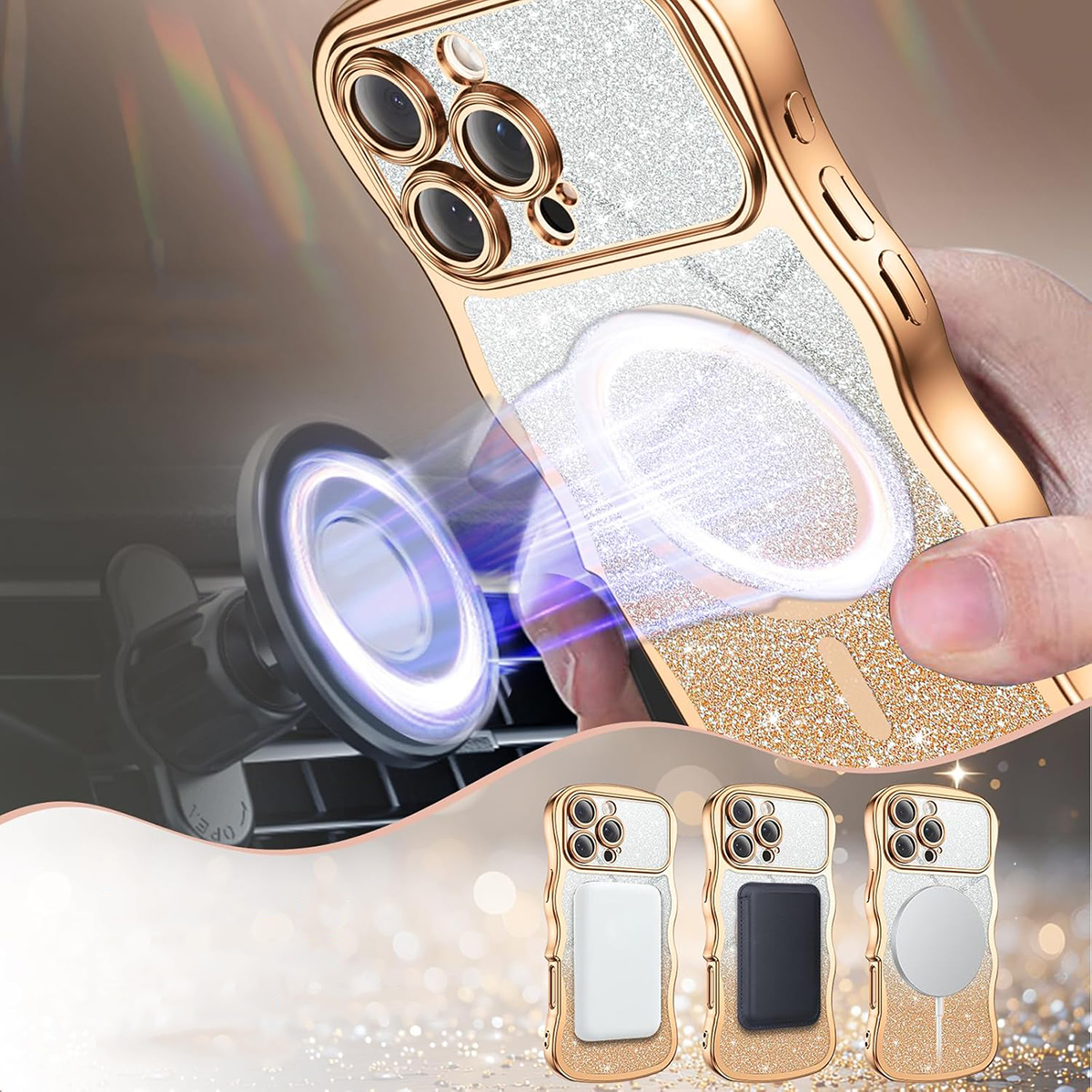 ETUI EXOGUARD GLITTER WAVE - APPLE IPHONE 16 PRO - GOLD