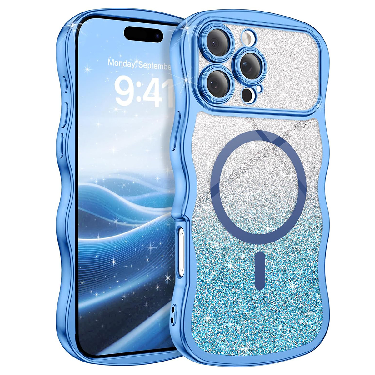 ETUI EXOGUARD GLITTER WAVE - APPLE IPHONE 16 PRO MAX - LIGHT BLUE