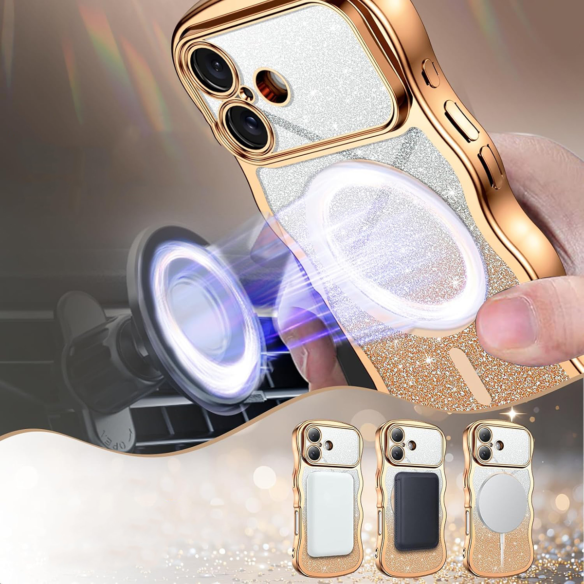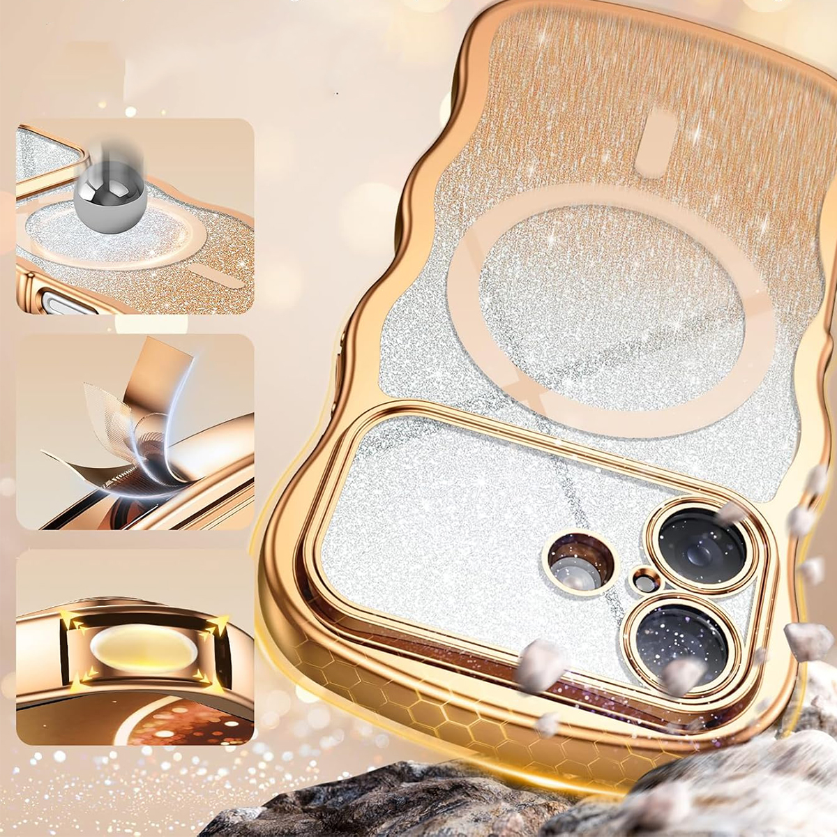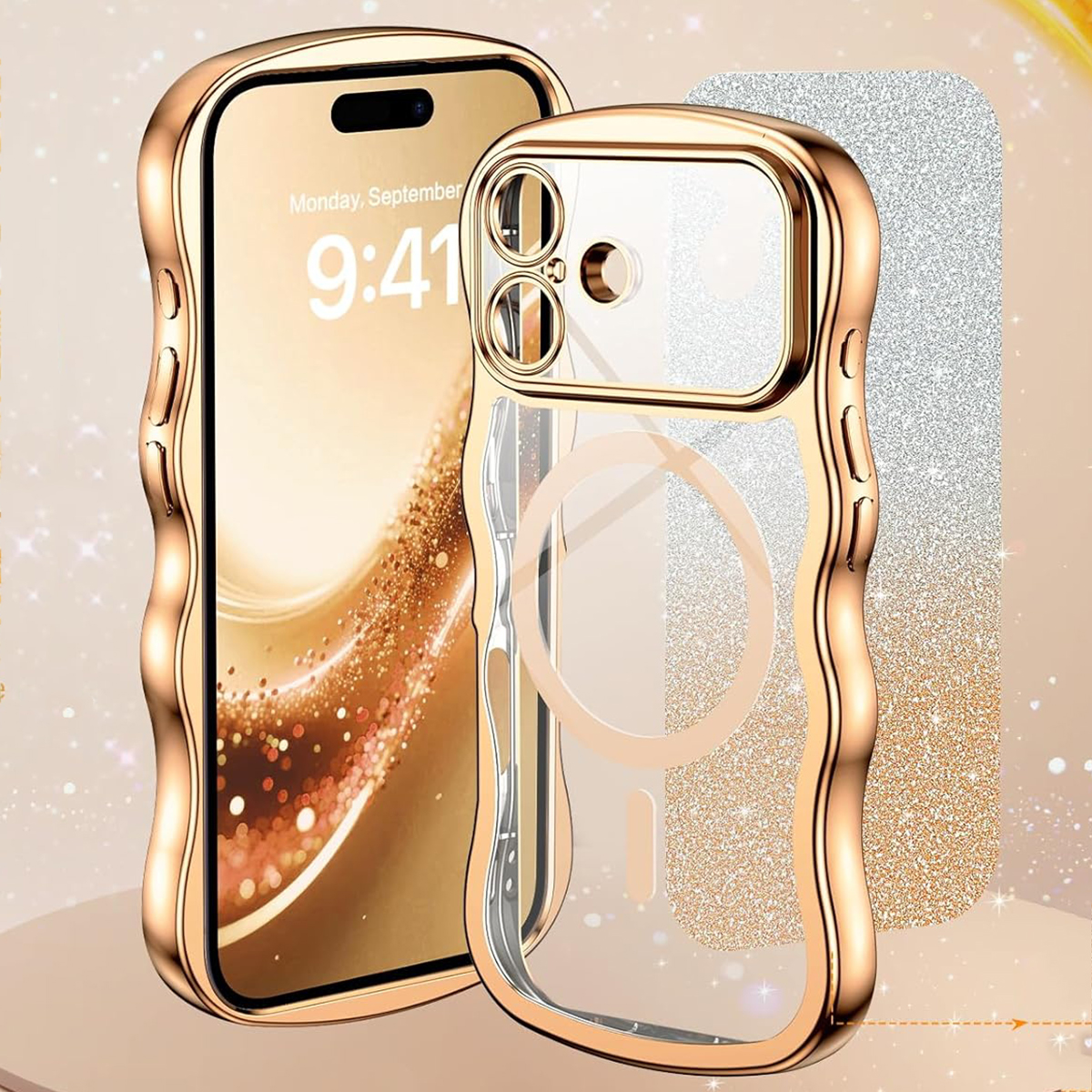 ETUI EXOGUARD GLITTER WAVE - APPLE IPHONE 17 - GOLD