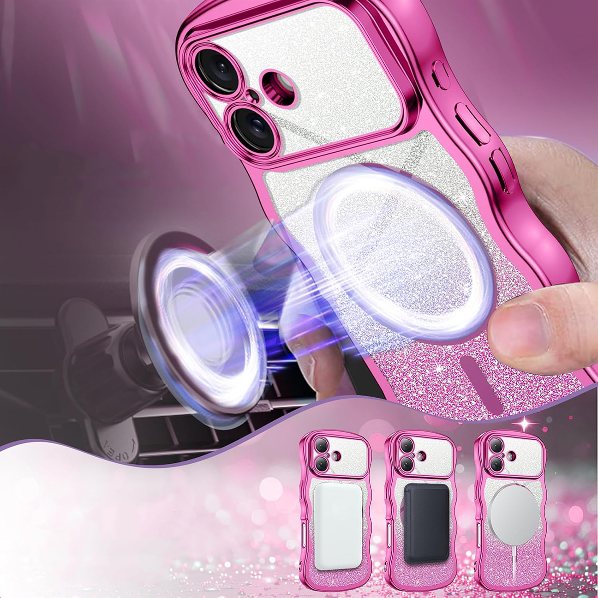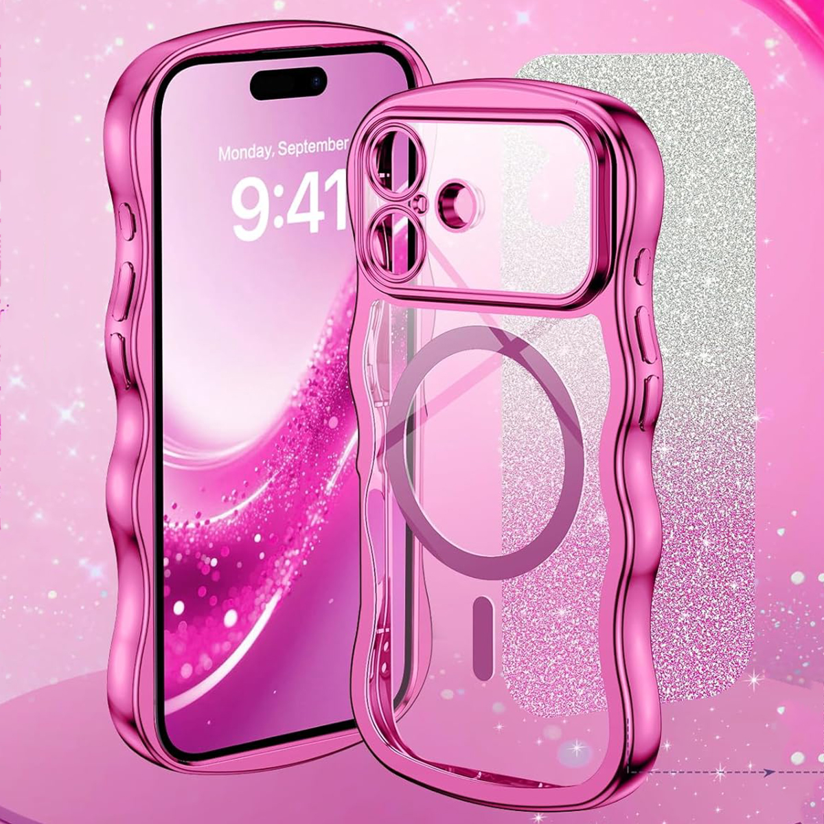 ETUI EXOGUARD GLITTER WAVE - APPLE IPHONE 17 - HOT PINK