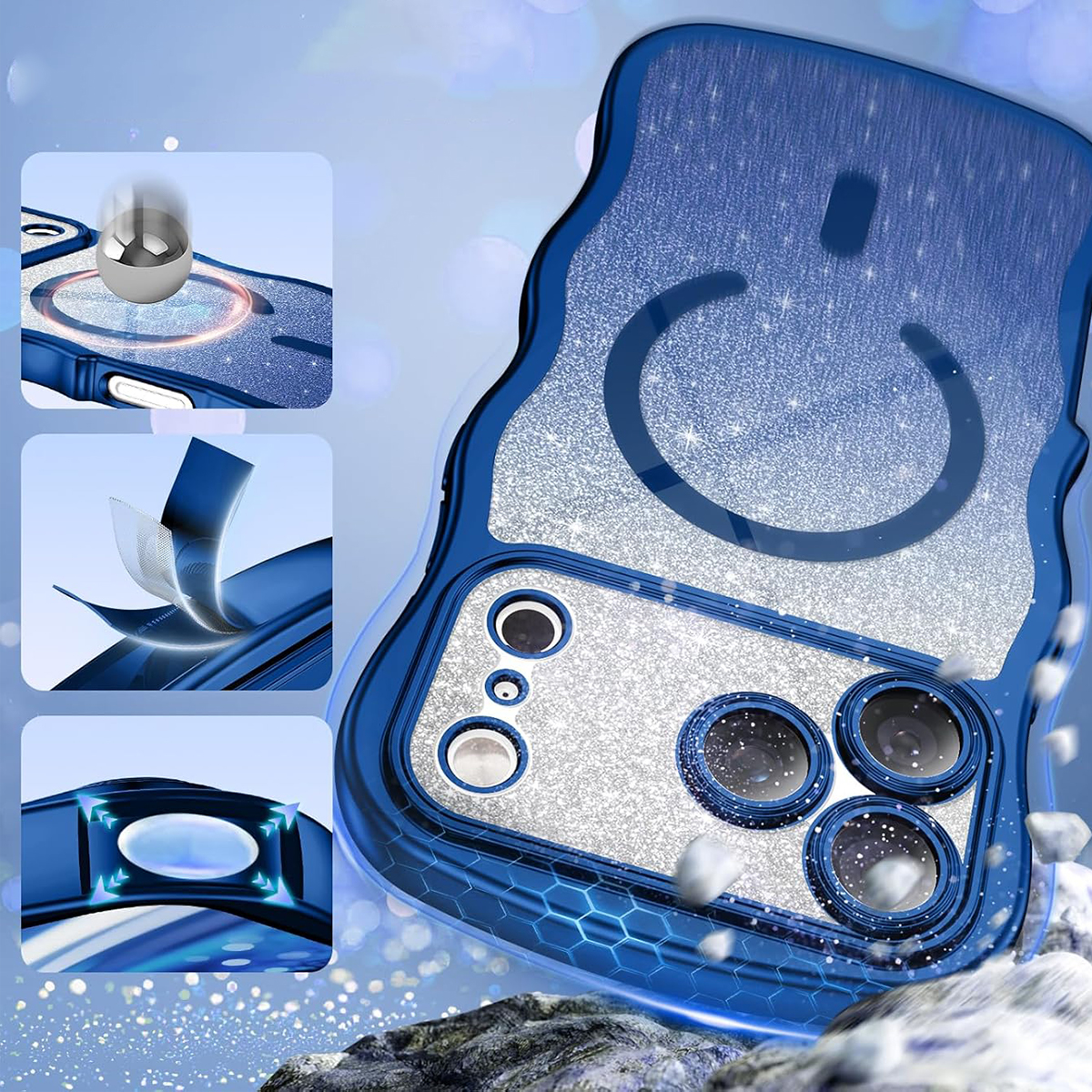 ETUI EXOGUARD GLITTER WAVE - APPLE IPHONE 17 PRO - BLUE