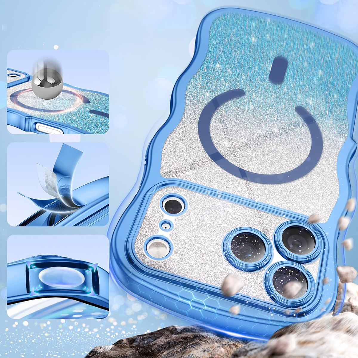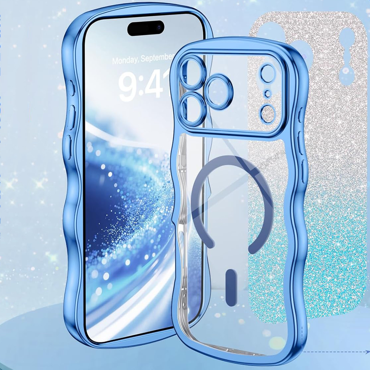 ETUI EXOGUARD GLITTER WAVE - APPLE IPHONE 17 PRO - LIGHT BLUE