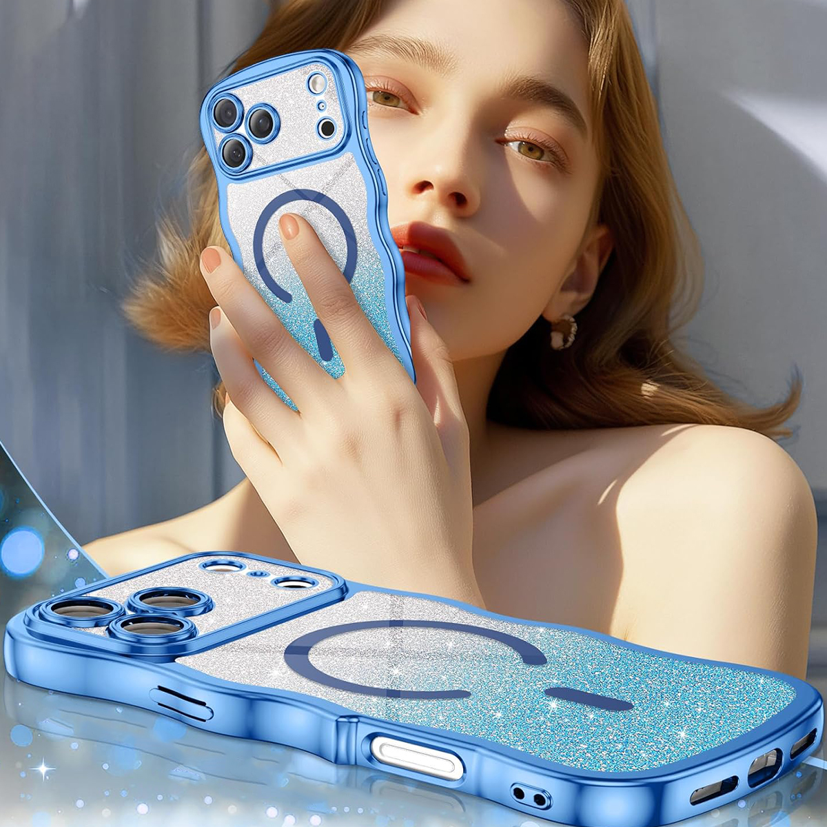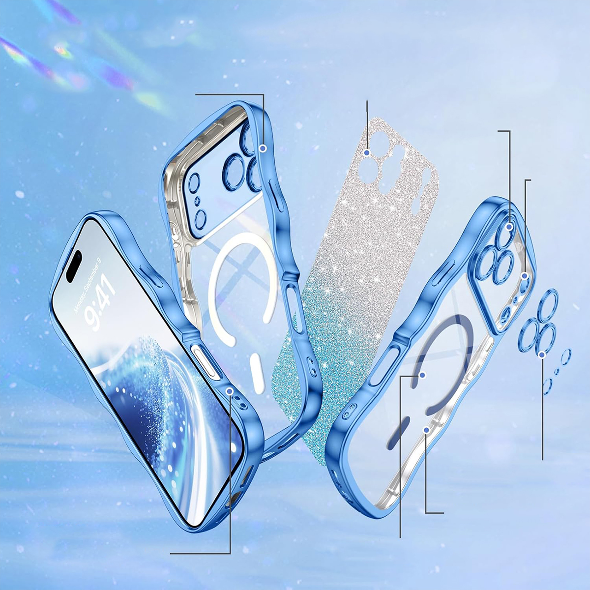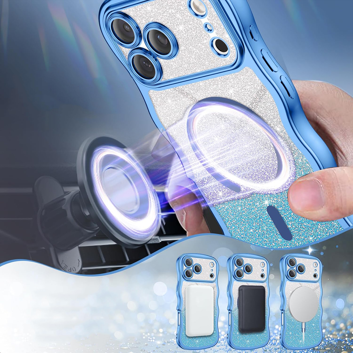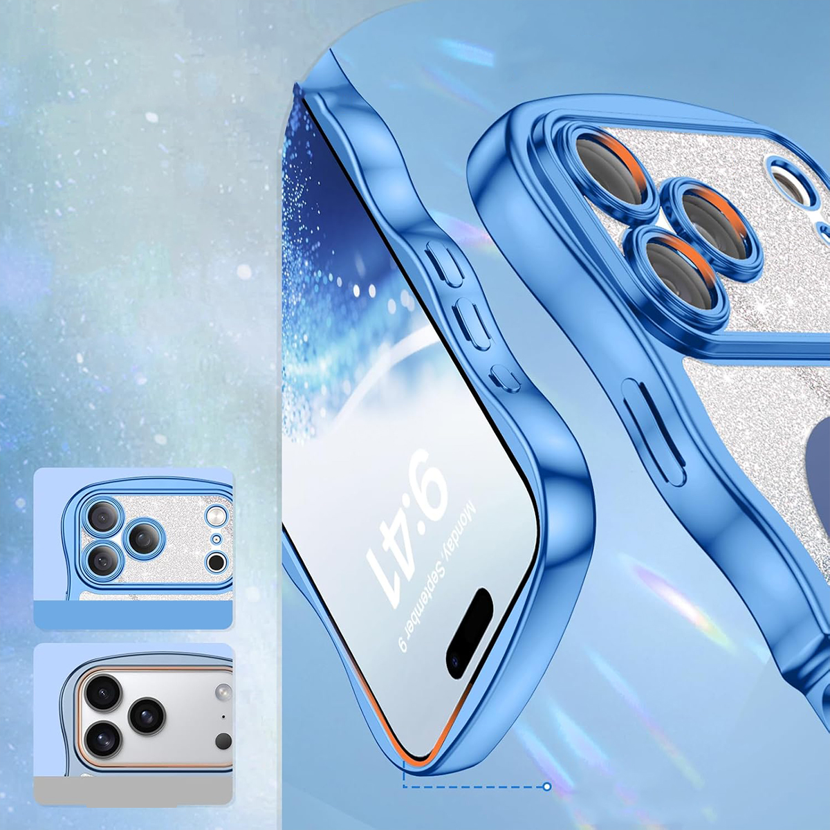 ETUI EXOGUARD GLITTER WAVE - APPLE IPHONE 17 PRO MAX - LIGHT BLUE
