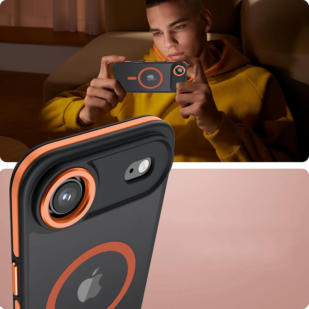 ETUI EXOGUARD MATTE 2.0 - APPLE IPHONE 17 AIR - BLACK / ORANGE