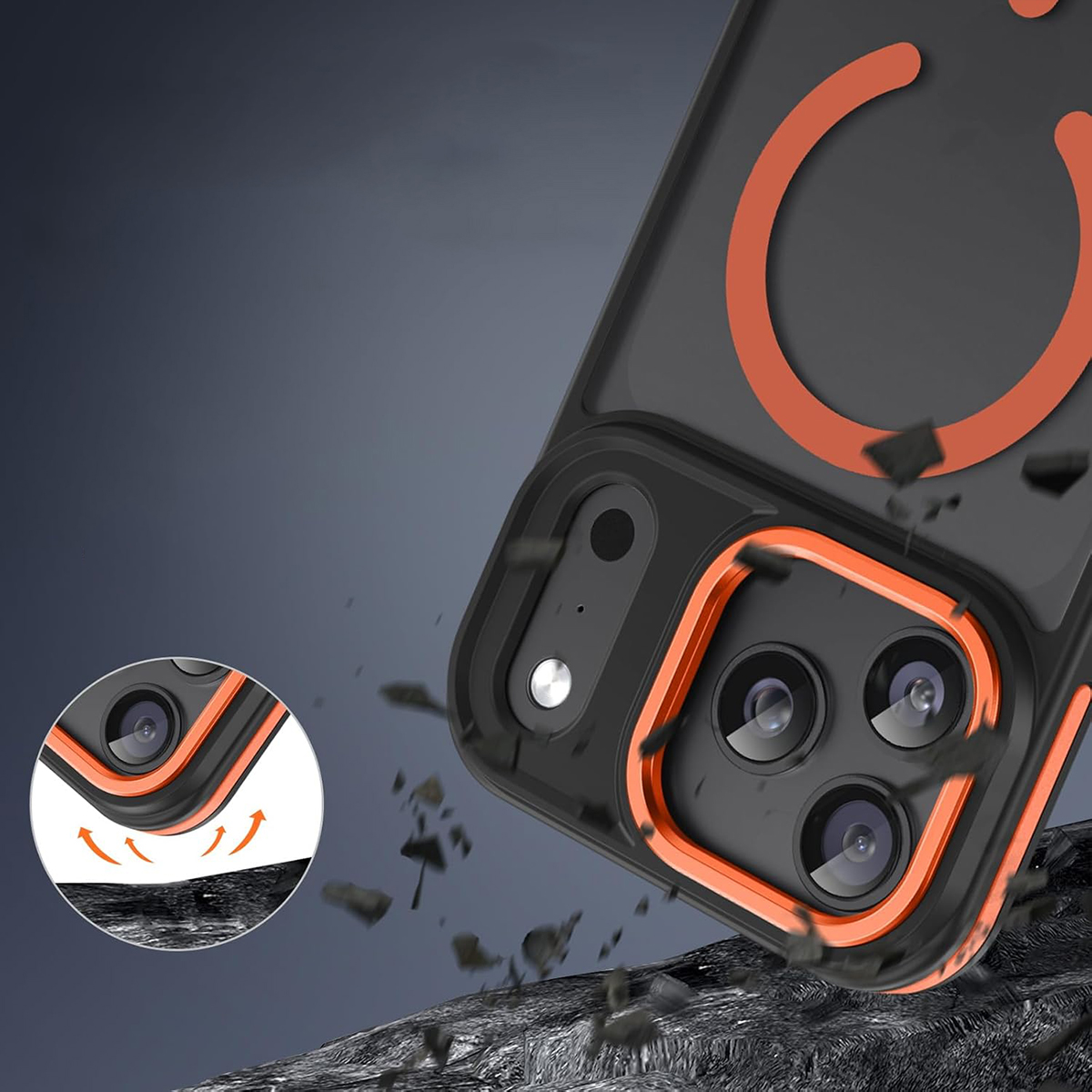 ETUI EXOGUARD MATTE 2.0 - APPLE IPHONE 17 PRO - BLACK / ORANGE