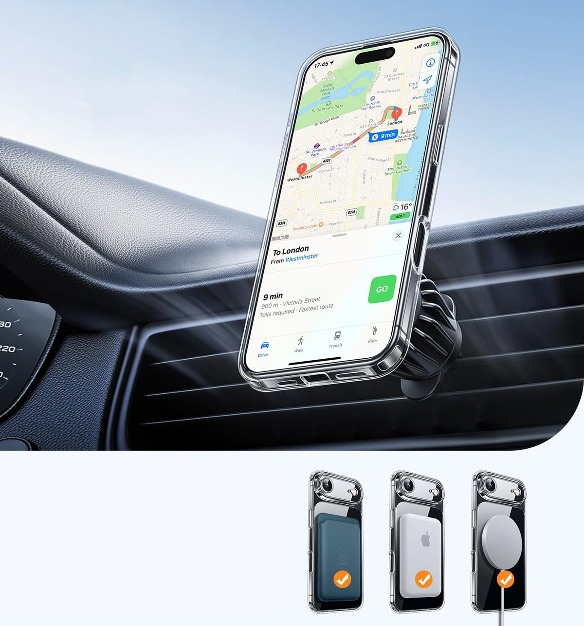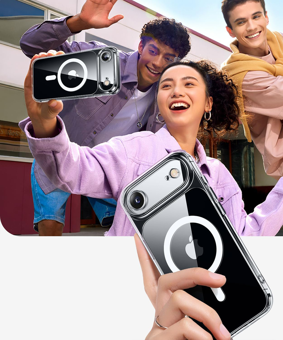 Wbudowany pierścień MagSafe umożliwia szybkie i pewne mocowanie akcesoriów kompatybilnych z tą technologią, takich jak ładowarki, portfele czy uchwyty samochodowe. Metalowe elementy pierścienia wbudowane w etui są odpowiednio rozmieszczone, by zapewnić idealne dopasowanie i stabilność montowanych dodatków. Pierścień MagSafe nie wpływa na codzienne użytkowanie, a same akcesoria można łatwo i szybko doczepić oraz zdemontować.