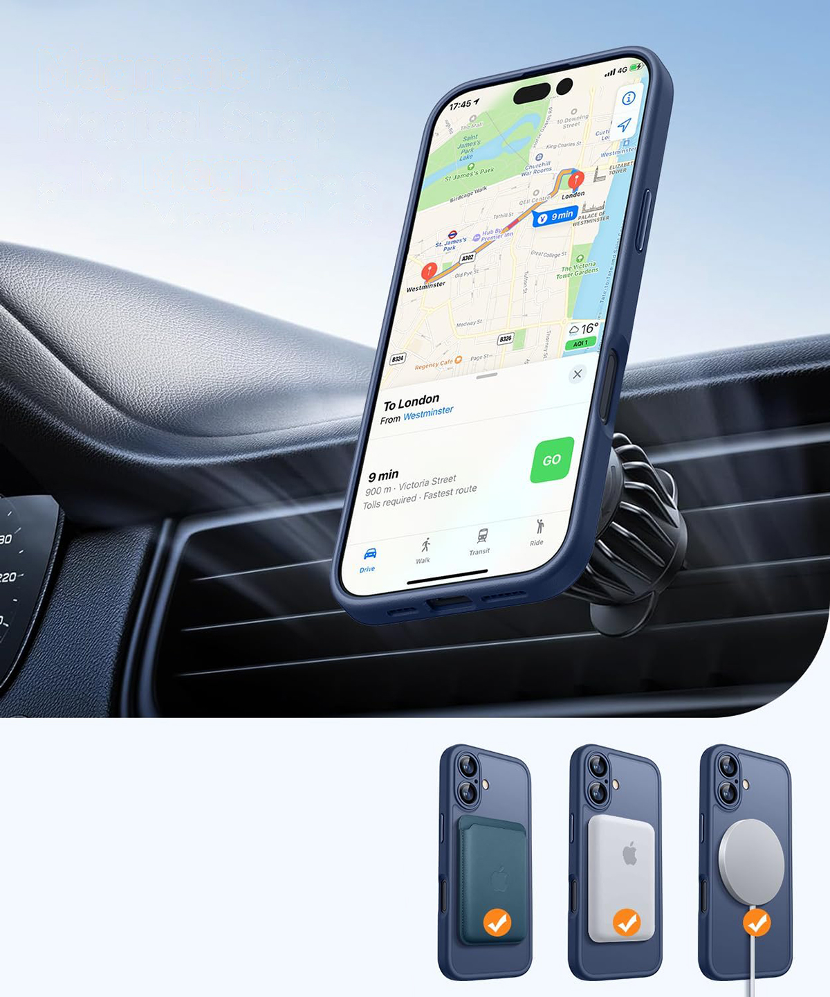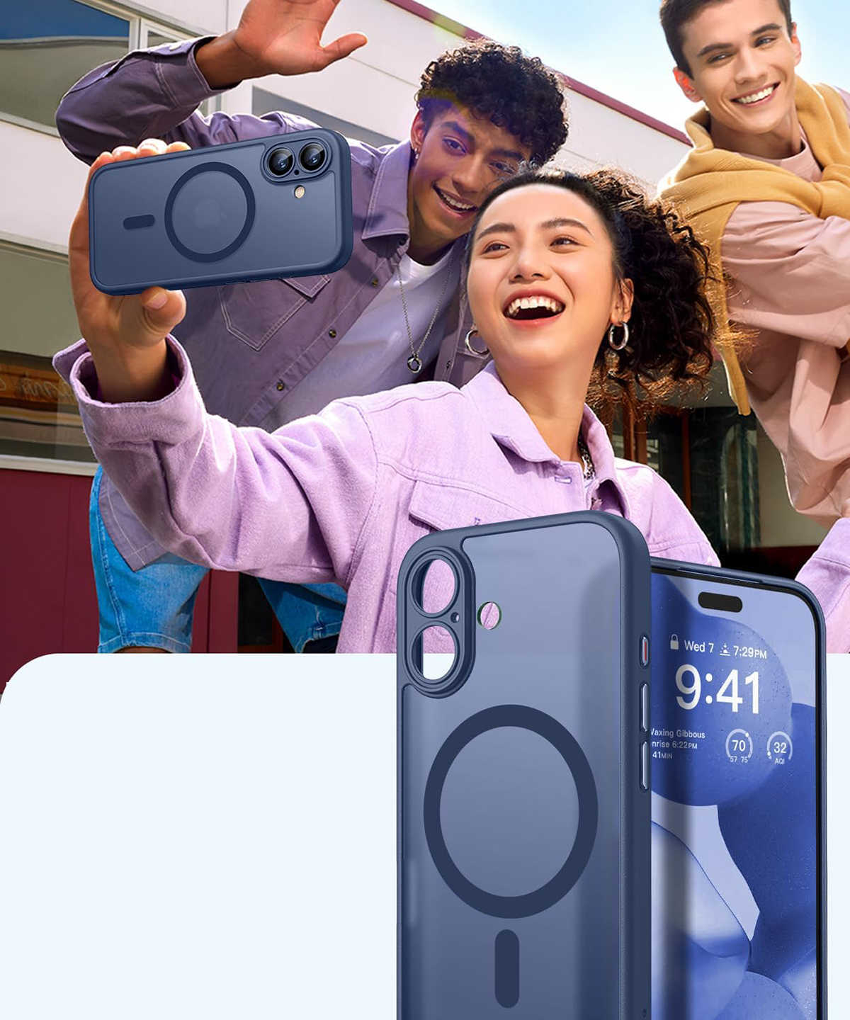 Wbudowany pierścień MagSafe umożliwia szybkie i pewne mocowanie akcesoriów kompatybilnych z tą technologią, takich jak ładowarki, portfele czy uchwyty samochodowe. Metalowe elementy pierścienia wbudowane w etui są odpowiednio rozmieszczone, by zapewnić idealne dopasowanie i stabilność montowanych dodatków. Pierścień MagSafe nie wpływa na codzienne użytkowanie, a same akcesoria można łatwo i szybko doczepić oraz zdemontować.