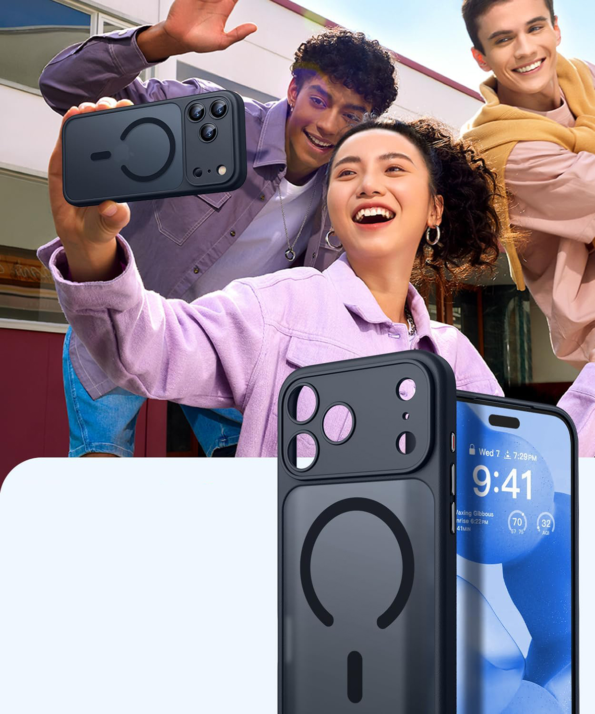 Wbudowany pierścień MagSafe umożliwia szybkie i pewne mocowanie akcesoriów kompatybilnych z tą technologią, takich jak ładowarki, portfele czy uchwyty samochodowe. Metalowe elementy pierścienia wbudowane w etui są odpowiednio rozmieszczone, by zapewnić idealne dopasowanie i stabilność montowanych dodatków. Pierścień MagSafe nie wpływa na codzienne użytkowanie, a same akcesoria można łatwo i szybko doczepić oraz zdemontować.