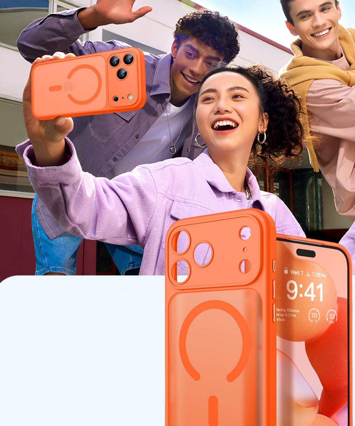 Wbudowany pierścień MagSafe umożliwia szybkie i pewne mocowanie akcesoriów kompatybilnych z tą technologią, takich jak ładowarki, portfele czy uchwyty samochodowe. Metalowe elementy pierścienia wbudowane w etui są odpowiednio rozmieszczone, by zapewnić idealne dopasowanie i stabilność montowanych dodatków. Pierścień MagSafe nie wpływa na codzienne użytkowanie, a same akcesoria można łatwo i szybko doczepić oraz zdemontować.
