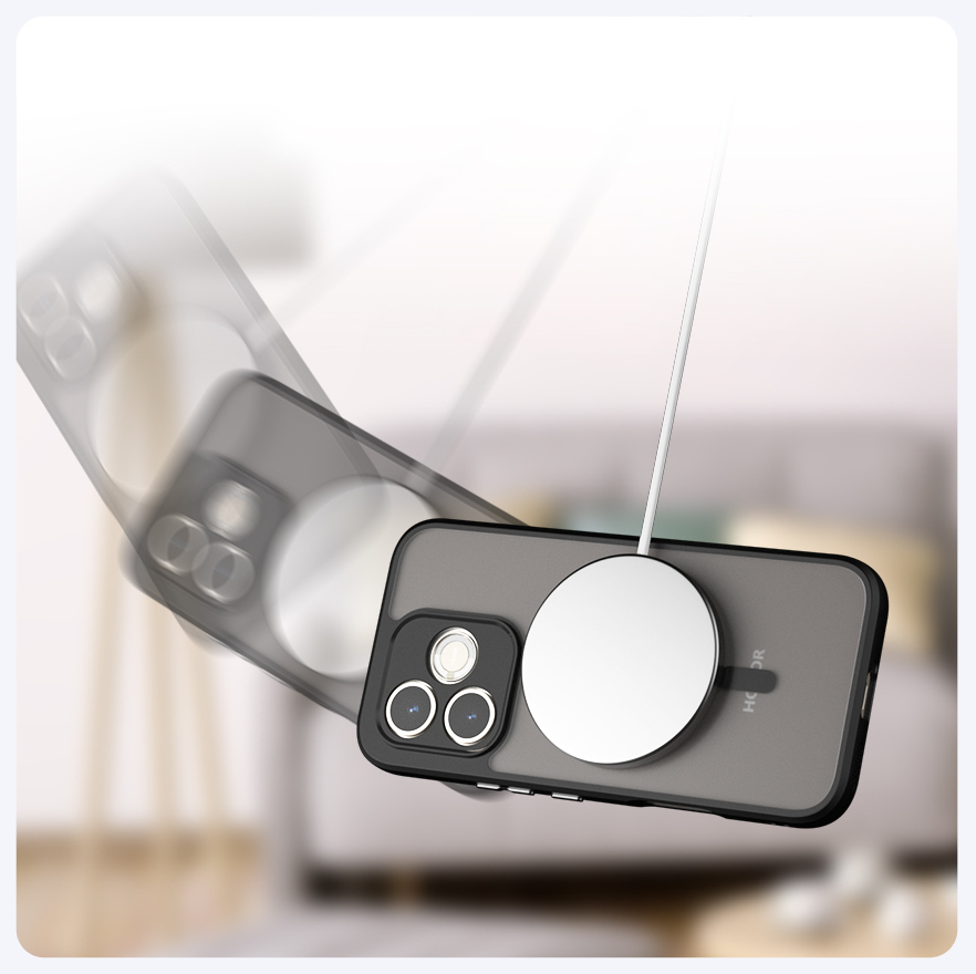 Wbudowany magnetyczny pierścień MagSafe umożliwia szybkie i pewne mocowanie akcesoriów kompatybilnych z tą technologią, takich jak ładowarki (działa tylko z telefonami obsługującymi ładowanie indukcyjne), portfele czy uchwyty samochodowe. Magnesy wbudowane w etui są odpowiednio rozmieszczone, by zapewnić idealne dopasowanie i stabilność montowanych dodatków. Pierścień MagSafe nie wpływa na codzienne użytkowanie, a same akcesoria można łatwo i szybko doczepić oraz zdemontować.