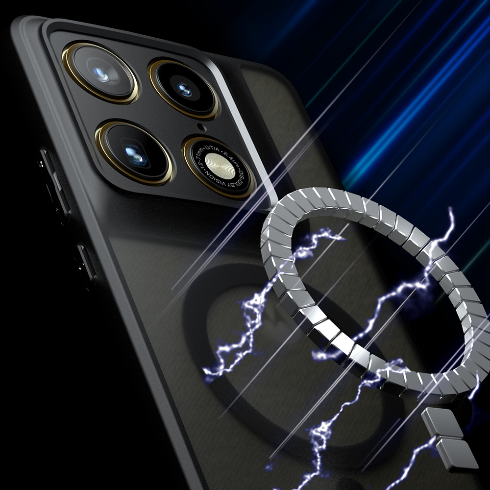 Wbudowany magnetyczny pierścień MagSafe umożliwia szybkie i pewne mocowanie akcesoriów kompatybilnych z tą technologią, takich jak ładowarki (działa tylko z telefonami obsługującymi ładowanie indukcyjne), portfele czy uchwyty samochodowe. Magnesy wbudowane w etui są odpowiednio rozmieszczone, by zapewnić idealne dopasowanie i stabilność montowanych dodatków. Pierścień MagSafe nie wpływa na codzienne użytkowanie, a same akcesoria można łatwo i szybko doczepić oraz zdemontować.