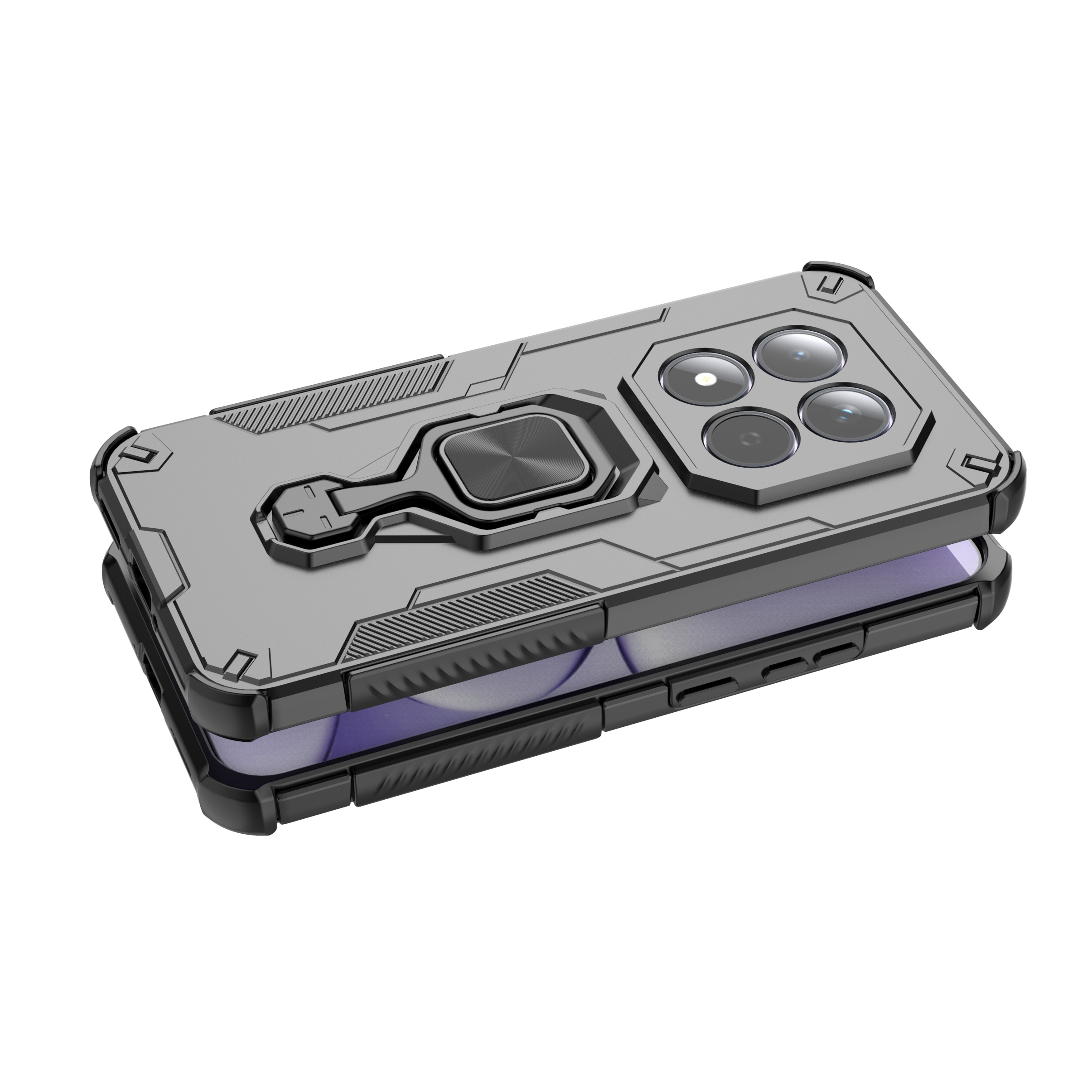 Etui MECHSHIELD to akcesorium, które zapewnia wysoki poziom ochrony połączony z nowoczesnym designem. Wykonane z wysokiej jakości materiałów, które skutecznie chronią Twój telefon przed uderzeniami, zadrapaniami, upadkami i innymi uszkodzeniami mechanicznymi. Wbudowana metalowa blaszka umożliwia szybkie i pewne mocowanie do uchwytów samochodowych. Metalowy ring służy za wygodną podstawkę, pozwalając na korzystanie z telefonu w pozycji poziomej. Pełni on również funkcję pierścienia, który można założyć na palec dla lepszego chwytu. Etui MECHSHIELD to doskonały wybór dla osób szukających funkcjonalnego rozwiązania, które jednocześnie charakteryzuje się zwiększoną ochroną.