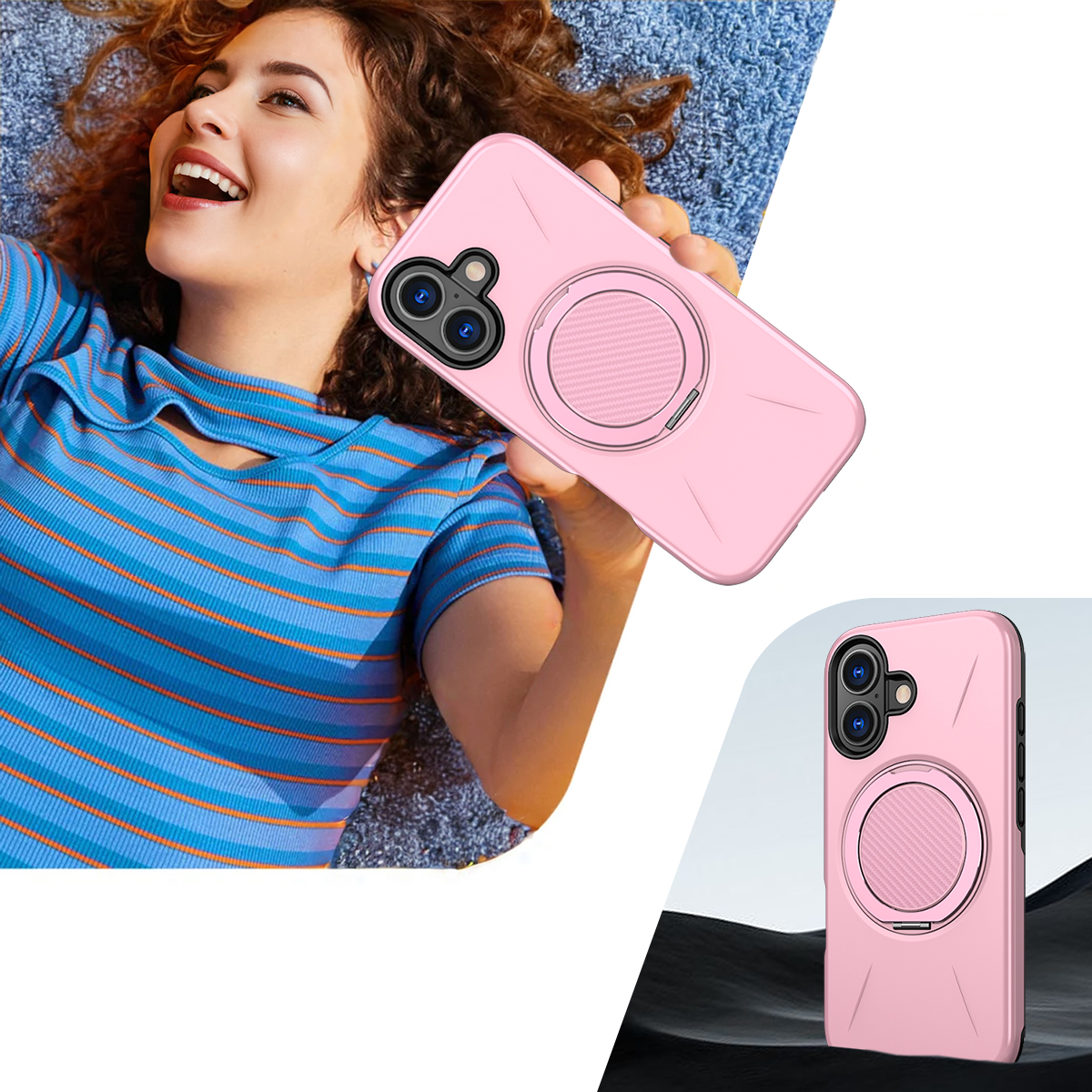 ✔️Otwierany pierścień MagSafe zwiększa wygodę i bezpieczeństwo. Zapewnia pewniejszy chwyt telefonu oraz zmniejsza ryzyko upuszczenia. Dzieki możliwości obrotu może służyć jako stabilna podstawka, co ułatwia oglądanie filmów lub rozmowy wideo. Pierścień MagSafe, umożliwia szybkie i pewne mocowanie akcesoriów kompatybilnych z tą technologią, takich jak ładowarki i powerbanki (działa tylko z telefonami obsługującymi ładowanie indukcyjne), portfele czy uchwyty samochodowe.