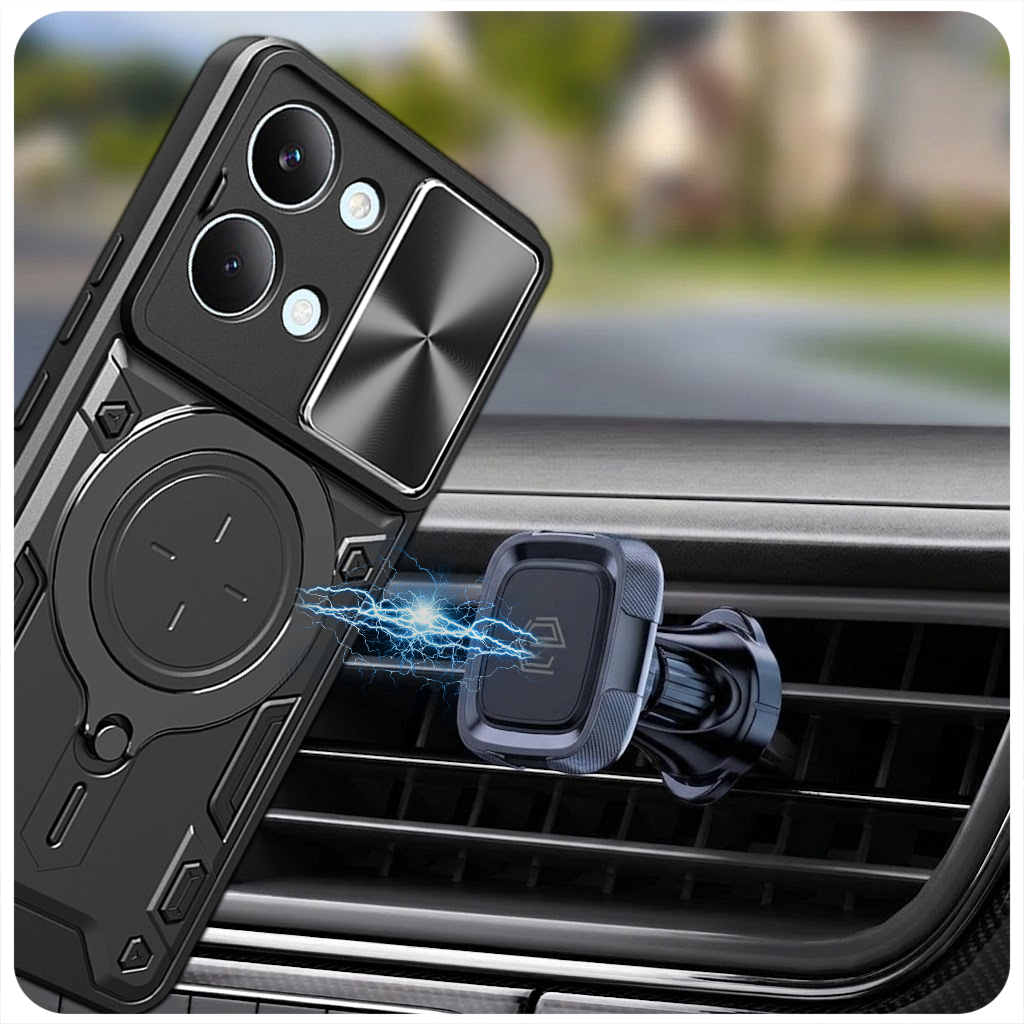 Wbudowana metalowa blaszka sprawia, że etui można łatwo zamocować do magnetycznych uchwytów samochodowych. Eliminuje to konieczność stosowania dodatkowych płytek montażowych, które często psują wygląd urządzenia. Natomiast zwiększa wytrzymałość i odporność na uszkodzenia przy upadku telefonu na plecy. Pozwala też na montaż i demontaż telefonu z uchwytu jedną ręką co zapewnia bezpieczeństwo użytkowania.