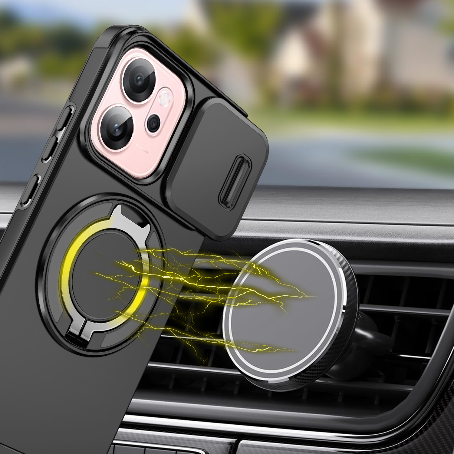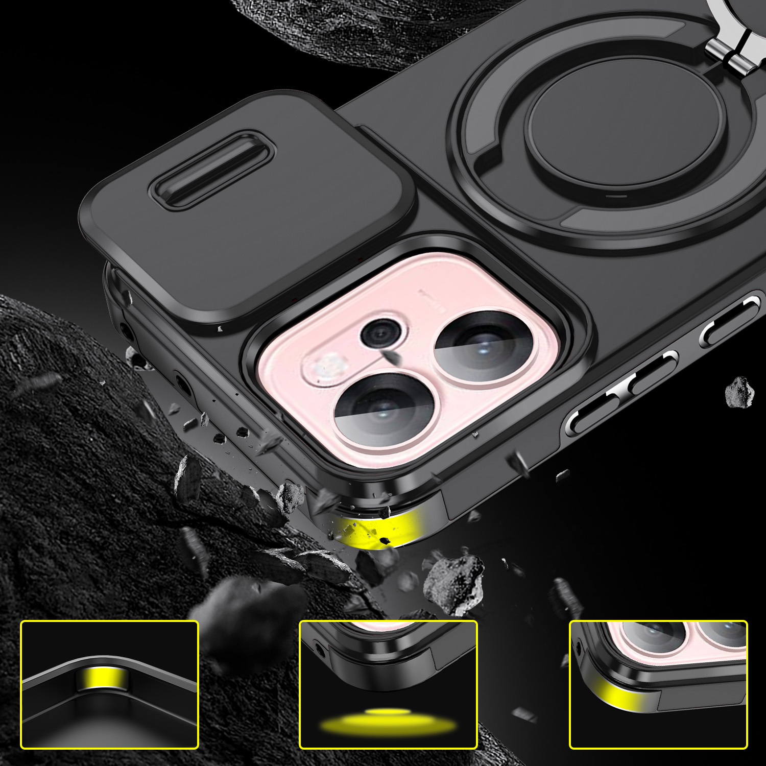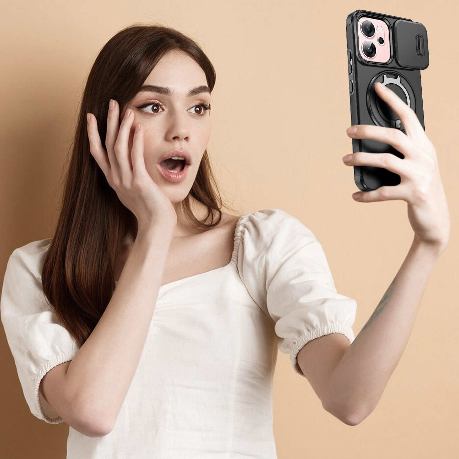 Etui SLIDEGUARD to nowoczesne akcesorium, które łączy funkcjonalność z estetyką. Wbudowany magnetyczny pierścień MagSafe umożliwia szybkie i pewne mocowanie akcesoriów kompatybilnych z tą technologią, takich jak ładowarki i powerbanki (działa tylko z telefonami obsługującymi ładowanie indukcyjne), portfele czy uchwyty samochodowe. Dodatkowo także służy za wygodną podstawkę, pozwalając na korzystanie z telefonu w pozycji poziomej. Dwuwarstwowa konstrukcja z twardego poliwęglanu i elastycznego TPU to większa ochrona przed upadkami, zarysowaniami i codziennym zużyciem. Przesuwana osłona aparatu zabezpiecza soczewki przed uszkodzeniami i zabrudzeniami.