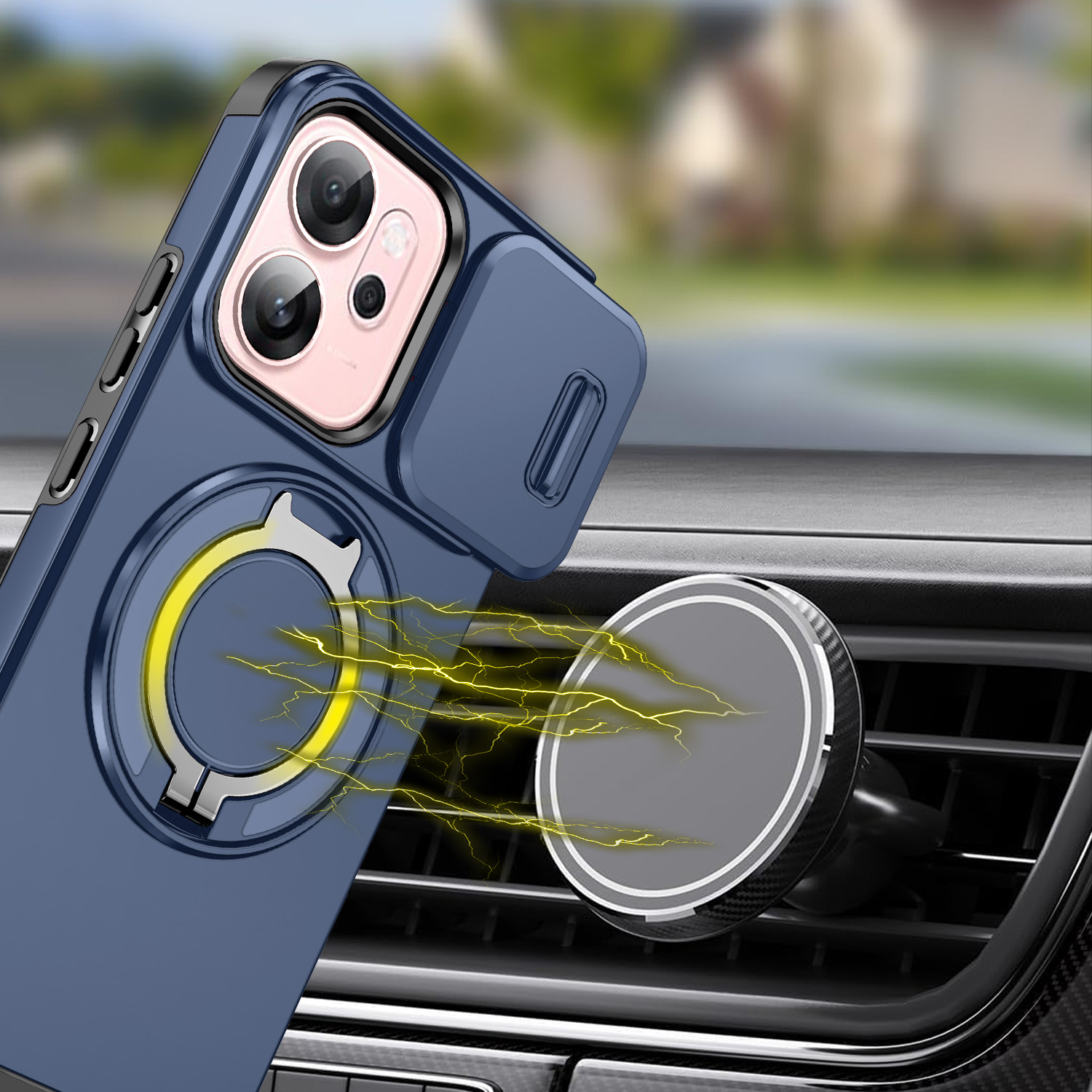 Etui SLIDEGUARD to nowoczesne akcesorium, które łączy funkcjonalność z estetyką. Wbudowany magnetyczny pierścień MagSafe umożliwia szybkie i pewne mocowanie akcesoriów kompatybilnych z tą technologią, takich jak ładowarki i powerbanki (działa tylko z telefonami obsługującymi ładowanie indukcyjne), portfele czy uchwyty samochodowe. Dodatkowo także służy za wygodną podstawkę, pozwalając na korzystanie z telefonu w pozycji poziomej. Dwuwarstwowa konstrukcja z twardego poliwęglanu i elastycznego TPU to większa ochrona przed upadkami, zarysowaniami i codziennym zużyciem. Przesuwana osłona aparatu zabezpiecza soczewki przed uszkodzeniami i zabrudzeniami.