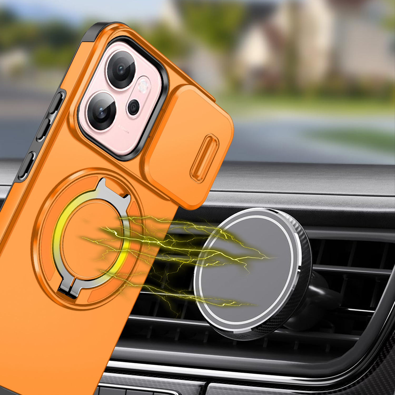 Etui SLIDEGUARD to nowoczesne akcesorium, które łączy funkcjonalność z estetyką. Wbudowany magnetyczny pierścień MagSafe umożliwia szybkie i pewne mocowanie akcesoriów kompatybilnych z tą technologią, takich jak ładowarki i powerbanki (działa tylko z telefonami obsługującymi ładowanie indukcyjne), portfele czy uchwyty samochodowe. Dodatkowo także służy za wygodną podstawkę, pozwalając na korzystanie z telefonu w pozycji poziomej. Dwuwarstwowa konstrukcja z twardego poliwęglanu i elastycznego TPU to większa ochrona przed upadkami, zarysowaniami i codziennym zużyciem. Przesuwana osłona aparatu zabezpiecza soczewki przed uszkodzeniami i zabrudzeniami.