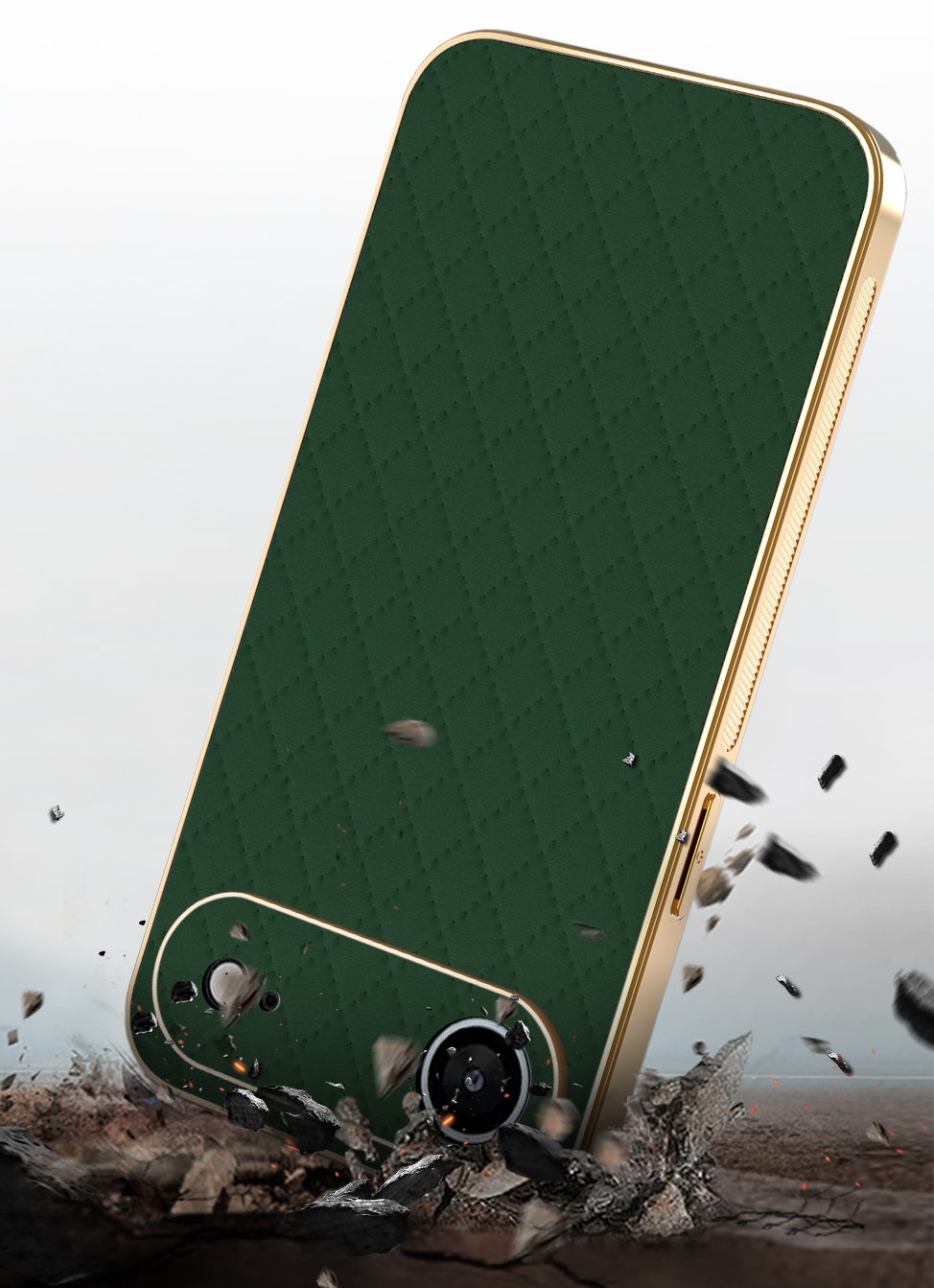 ✔️Stworzone z myślą o użytkownikach, którzy cenią sobie zarówno styl, jak i bezpieczeństwo. Złota ramka i matowa tekstura z delikatnym wzorem na plecach przyciągają wzrok i dodają luksusowego charakteru. Smukły profil idealnie wpasuje się do każdej torebki, kieszeni czy eleganckiej stylizacji.