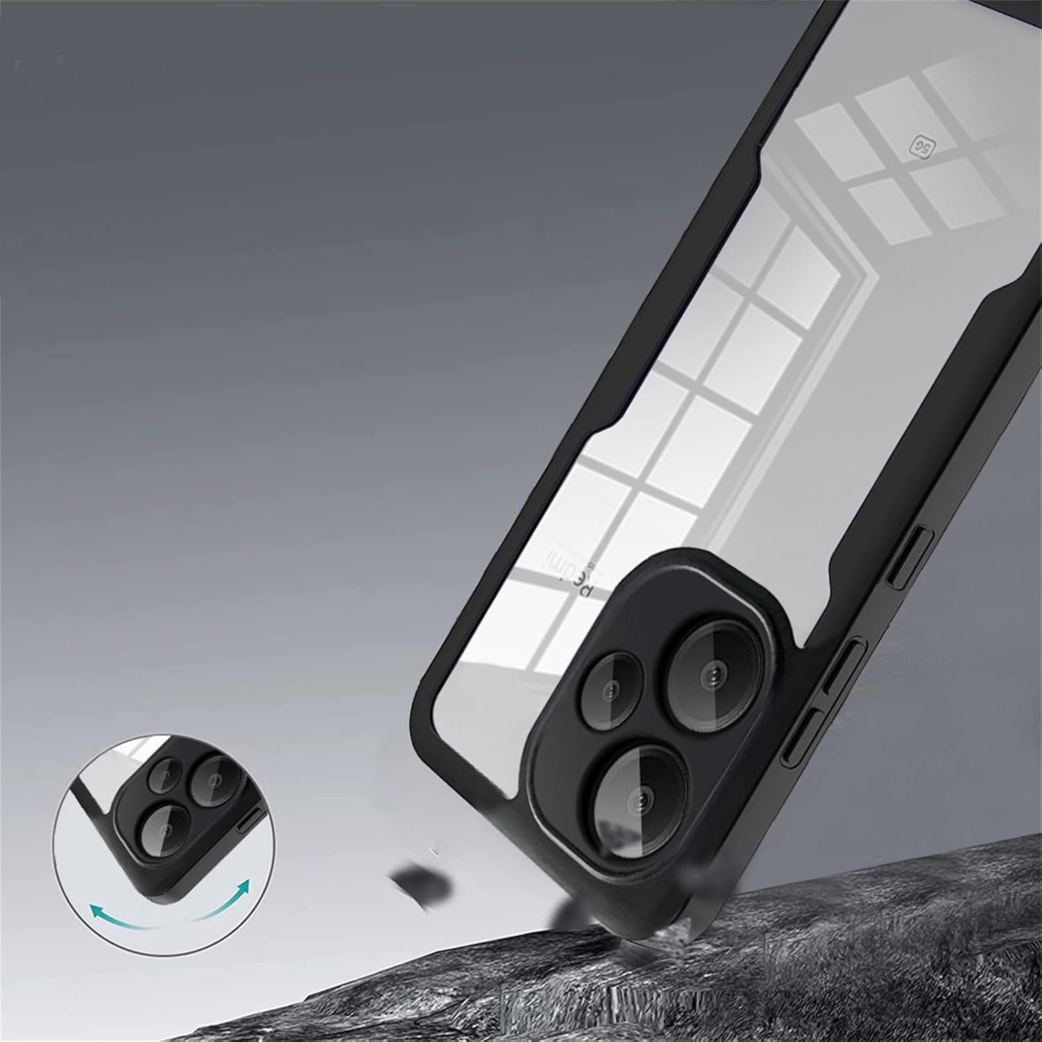 - Połączenie twardego poliwęglanu (plecy) i absorbującego uderzenia TPU.