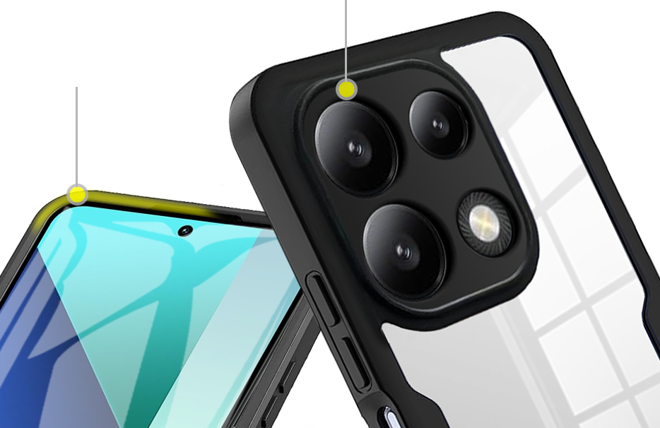 - Połączenie twardego poliwęglanu (plecy) i absorbującego uderzenia TPU.