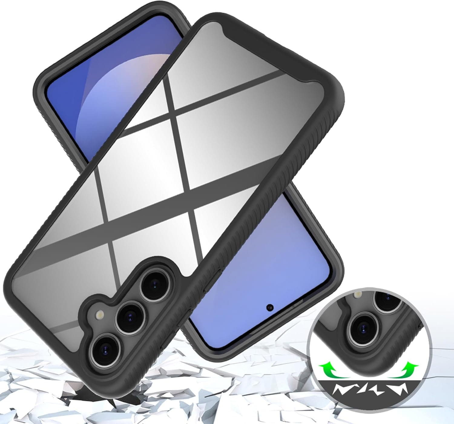 - Połączenie twardego poliwęglanu i absorbującego uderzenia TPU.