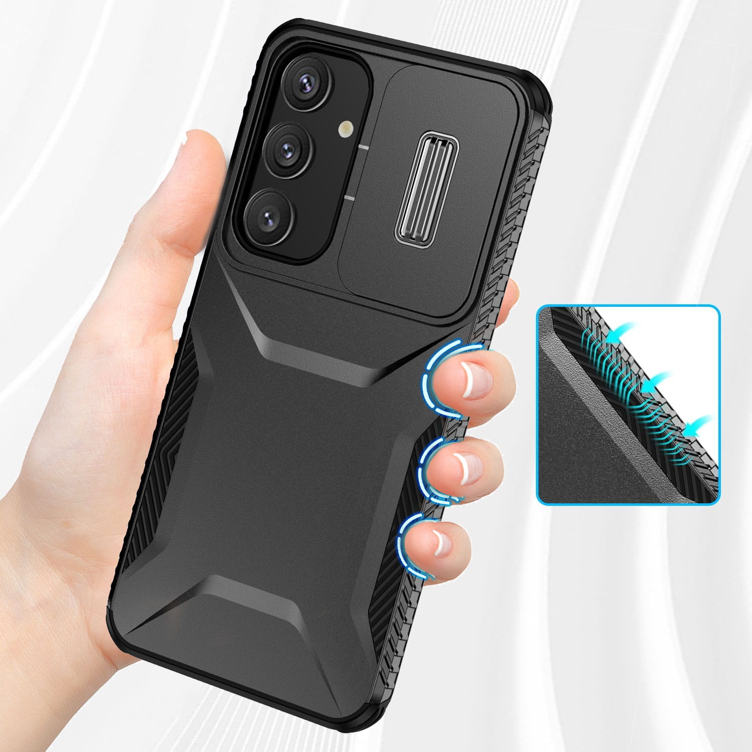 Ochronne etui składające się z dwóch materiałów: TPU (utwardzana guma) oraz twardego poliwęglanu, pokrytego warstwą antypoślizgową. Zapewnia to świetną ochronę przy zachowaniu pełnej funkcjonalności.