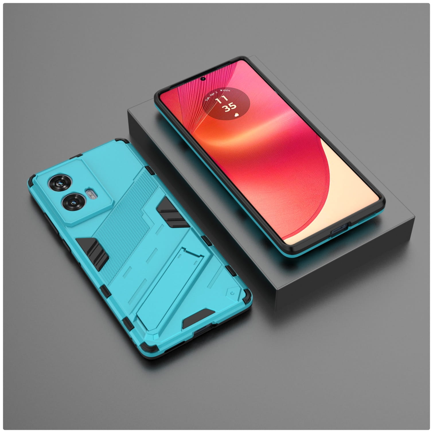 Ochronne etui składające się z dwóch materiałów: TPU (utwardzana guma) oraz twardego poliwęglanu. Zapewnia to świetną ochronę przy zachowaniu pełnej funkcjonalności.