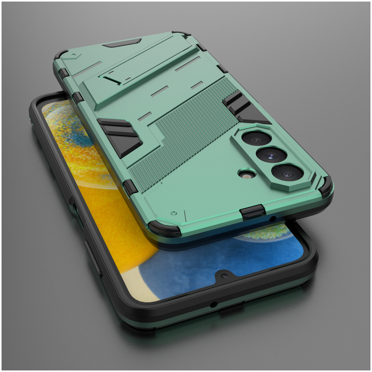 Etui EXOGUARD BIBERCAS łączy w sobie nowoczesny design, funkcjonalność i elegancję dzięki wykorzystaniu dwóch wysokiej jakości materiałów: twardego poliwęglanu i elastycznego TPU. Twarda obudowa z poliwęglanu zapewnia solidną ochronę przed zarysowaniami, wstrząsami i upadkami, natomiast TPU (termoplastyczny poliuretan) otacza urządzenie z boków, oferując lepszą przyczepność i dodatkową amortyzację. Wbudowana otwierana podstawka umożliwia wygodne ustawienie telefonu w pozycji poziomej, idealnej do oglądania filmów, przeglądania zdjęć czy prowadzenia wideorozmów. Zintegrowane przyciski zapewniają pełną funkcjonalność urządzenia, a precyzyjne dopasowanie etui daje łatwy dostęp do wszystkich portów i funkcji telefonu, co gwarantuje komfort użytkowania. Jest to idealny wybór dla osób szukających estetyki, wygody i funkcjonalności w jednym.