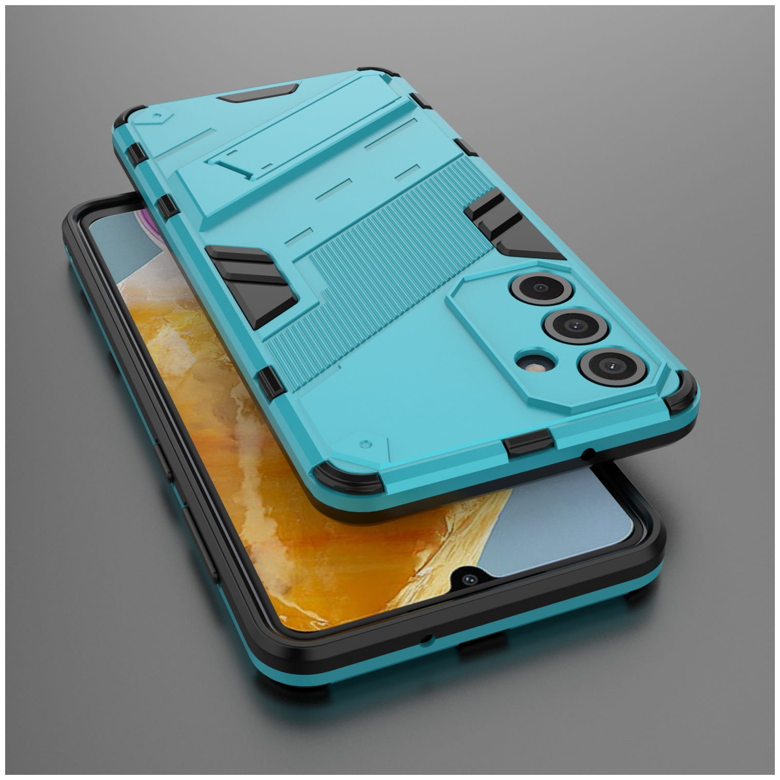 Ochronne etui składające się z dwóch materiałów: TPU (utwardzana guma) oraz twardego poliwęglanu. Zapewnia to świetną ochronę przy zachowaniu pełnej funkcjonalności.