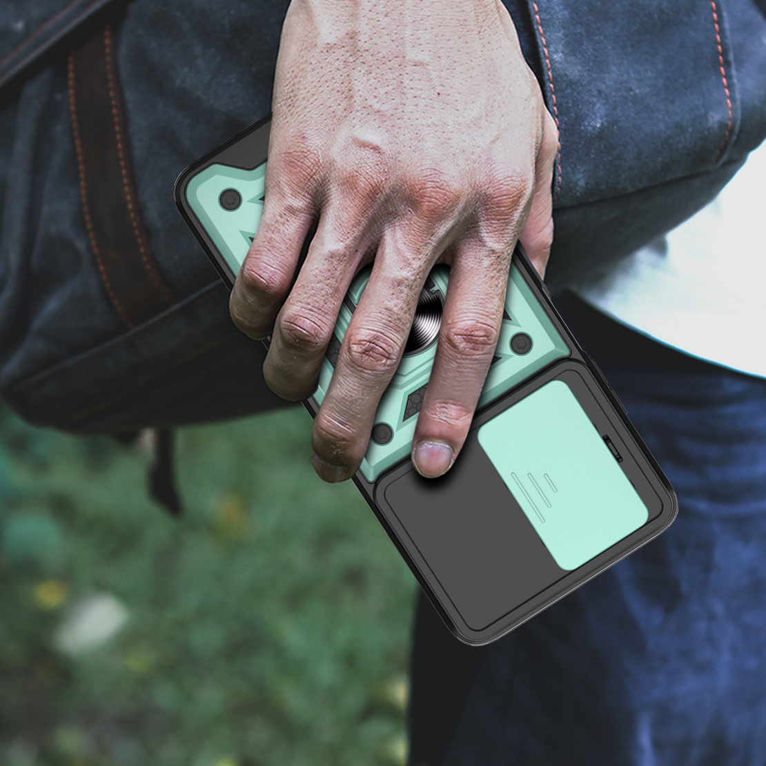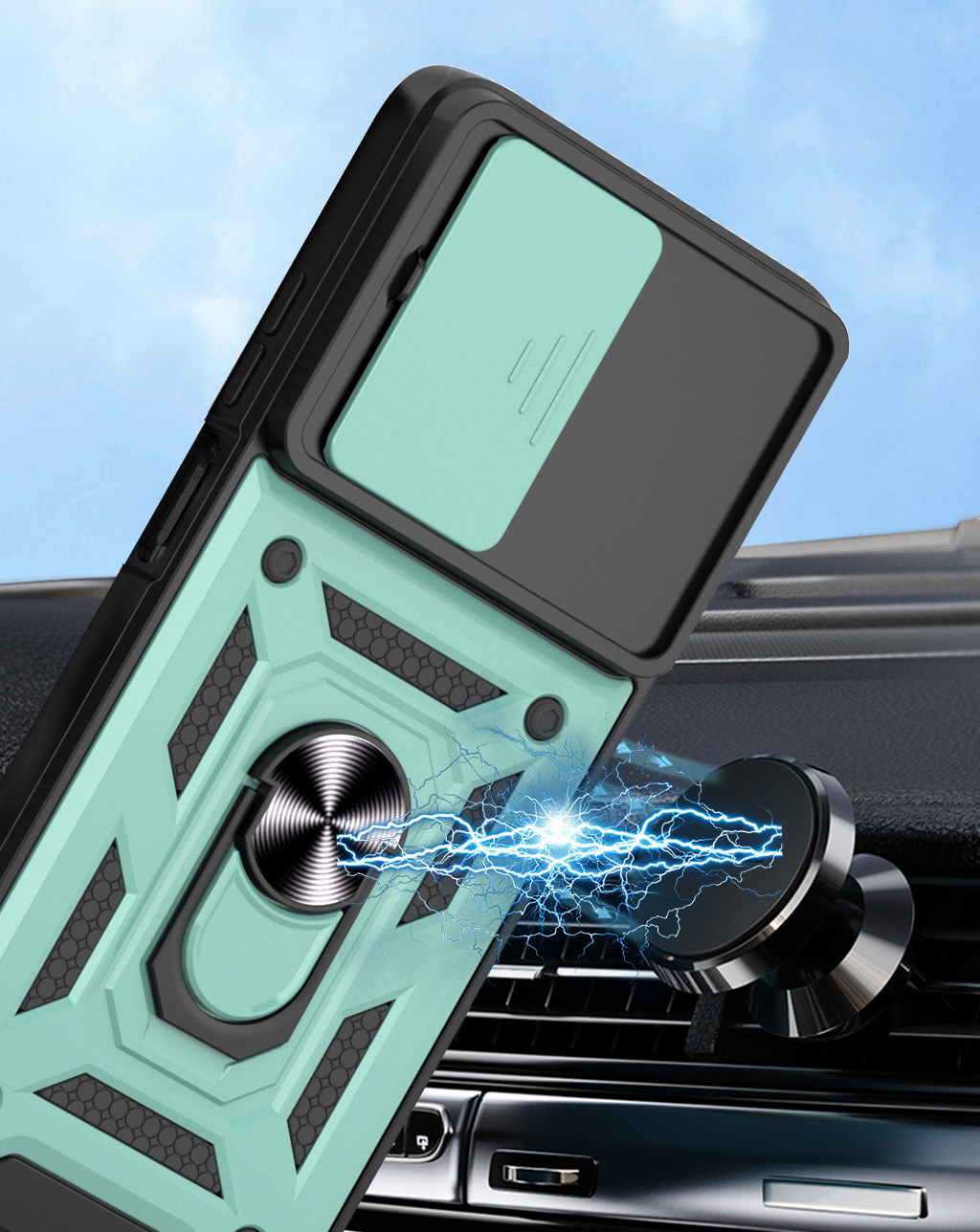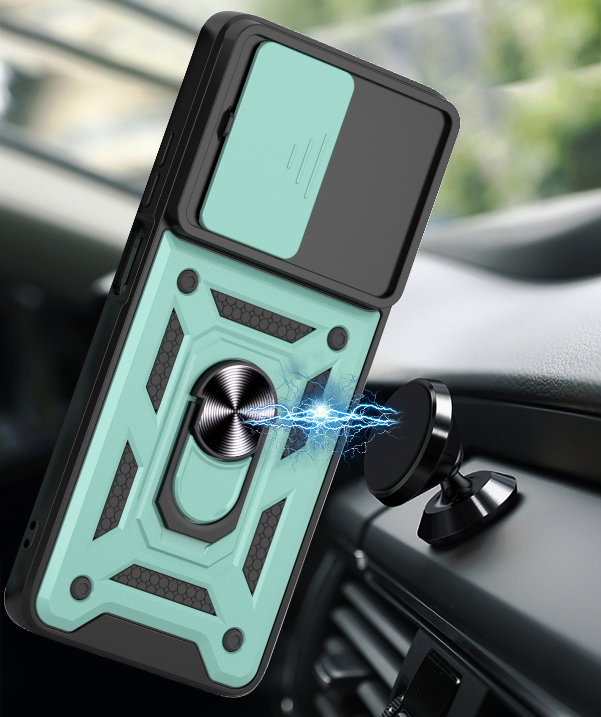 CAMSHIELD to etui, które zapewnia wysoki poziom ochrony połączony z nowoczesnym designem. Dwuwarstwowa konstrukcja z twardego poliwęglanu i elastycznego TPU zwiększa ochronę przed upadkami, zarysowaniami i codziennym zużyciem. Przesuwana osłona aparatu zabezpiecza soczewki przed uszkodzeniami i zabrudzeniami. Znajdujący się na pleckach metalowy ring z blaszką, pełni funkcję podstawki, uchwytu do wygodnego trzymania oraz mocowania do uchwytów magnetycznych w samochodzie. Zintegrowane przyciski chronią newralgiczne elementy telefonu, zachowując jednocześnie pełną funkcjonalność i wygodę użytkowania. Dodatkowo etui posiada dwie małe dziurki, umożliwiające przyczepienie smyczy lub zawieszki. To praktyczne rozwiązanie, które sprawdzi się zarówno na co dzień, jak i podczas wycieczek czy podróży.