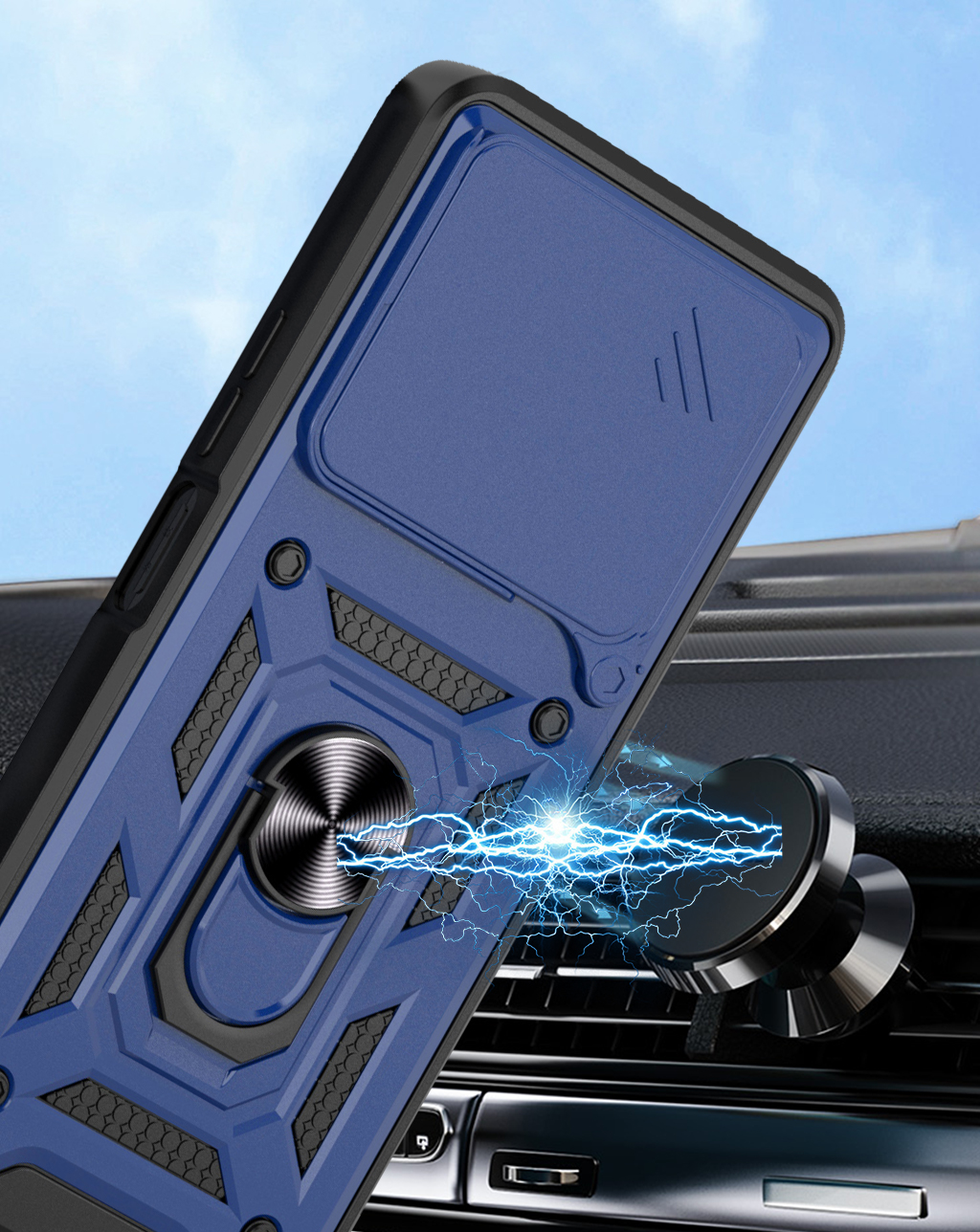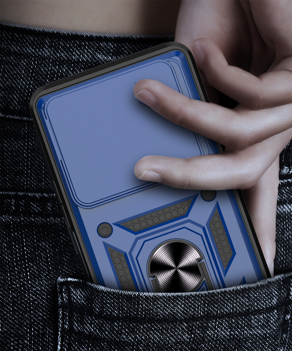 CAMSHIELD to etui, które zapewnia wysoki poziom ochrony połączony z nowoczesnym designem. Dwuwarstwowa konstrukcja z twardego poliwęglanu i elastycznego TPU zwiększa ochronę przed upadkami, zarysowaniami i codziennym zużyciem. Przesuwana osłona aparatu zabezpiecza soczewki przed uszkodzeniami i zabrudzeniami. Znajdujący się na pleckach metalowy ring z blaszką, pełni funkcję podstawki, uchwytu do wygodnego trzymania oraz mocowania do uchwytów magnetycznych w samochodzie. Zintegrowane przyciski chronią newralgiczne elementy telefonu, zachowując jednocześnie pełną funkcjonalność i wygodę użytkowania. Dodatkowo etui posiada dwie małe dziurki, umożliwiające przyczepienie smyczy lub zawieszki. To praktyczne rozwiązanie, które sprawdzi się zarówno na co dzień, jak i podczas wycieczek czy podróży.