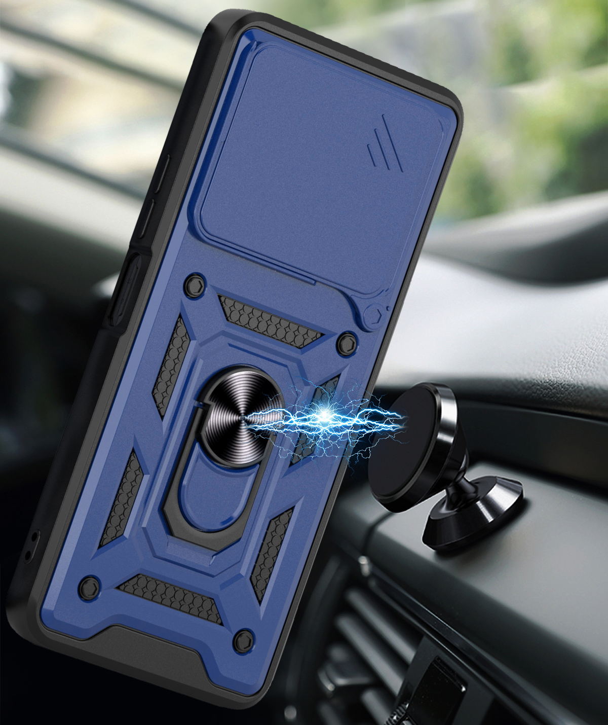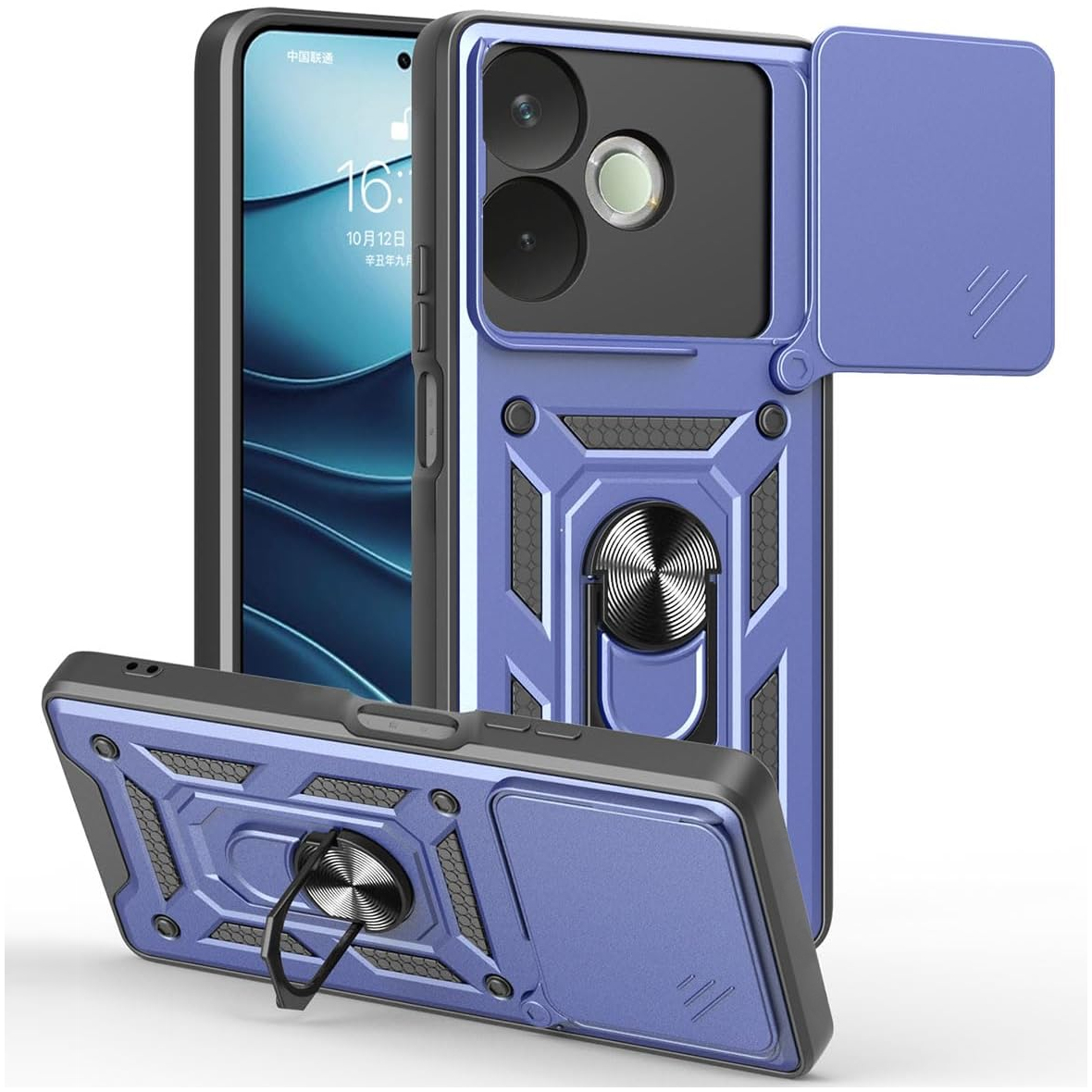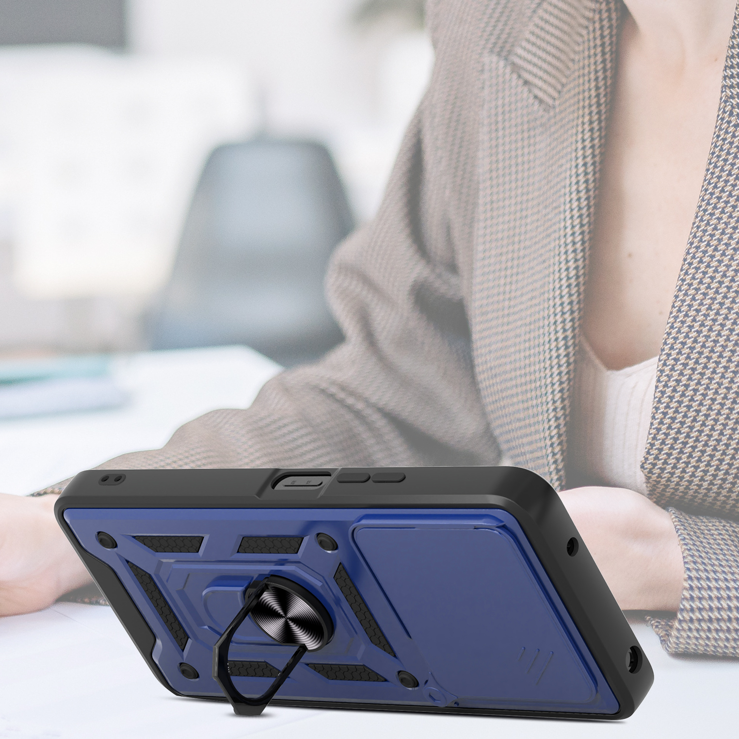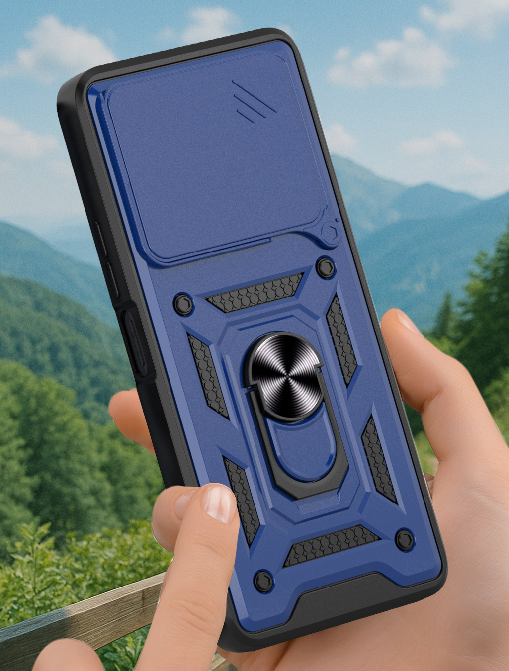 Etui zostało zaprojektowane z myślą o kompleksowej ochronie urządzenia w codziennym użytkowaniu oraz w trudniejszych warunkach. Dzięki zastosowaniu dwuwarstwowej konstrukcji – twardej zewnętrznej powłoki z poliwęglanu (PC) oraz wewnętrznej warstwy z elastycznego TPU – skutecznie zmniejsza ryzyko uszkodzeń telefonu. Struktura materiału, wbudowany ring oraz antypoślizgowe detale ograniczają ryzyko wyślizgnięcia się telefonu z dłoni.