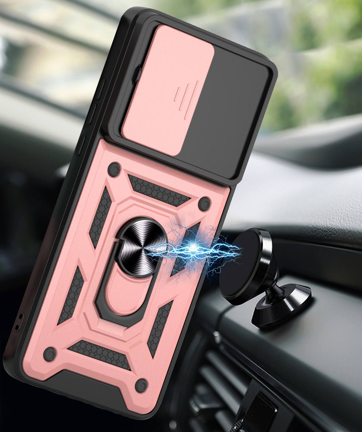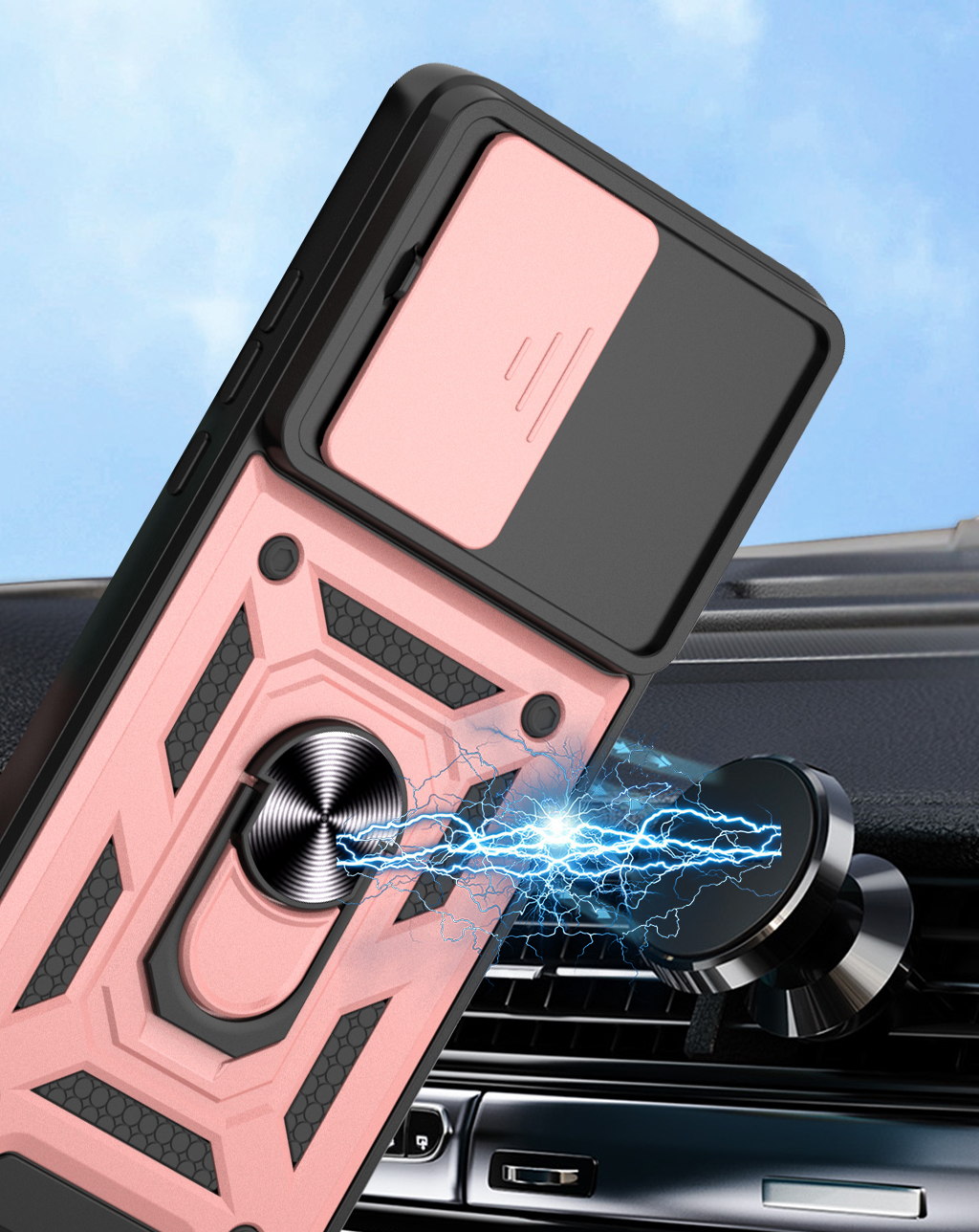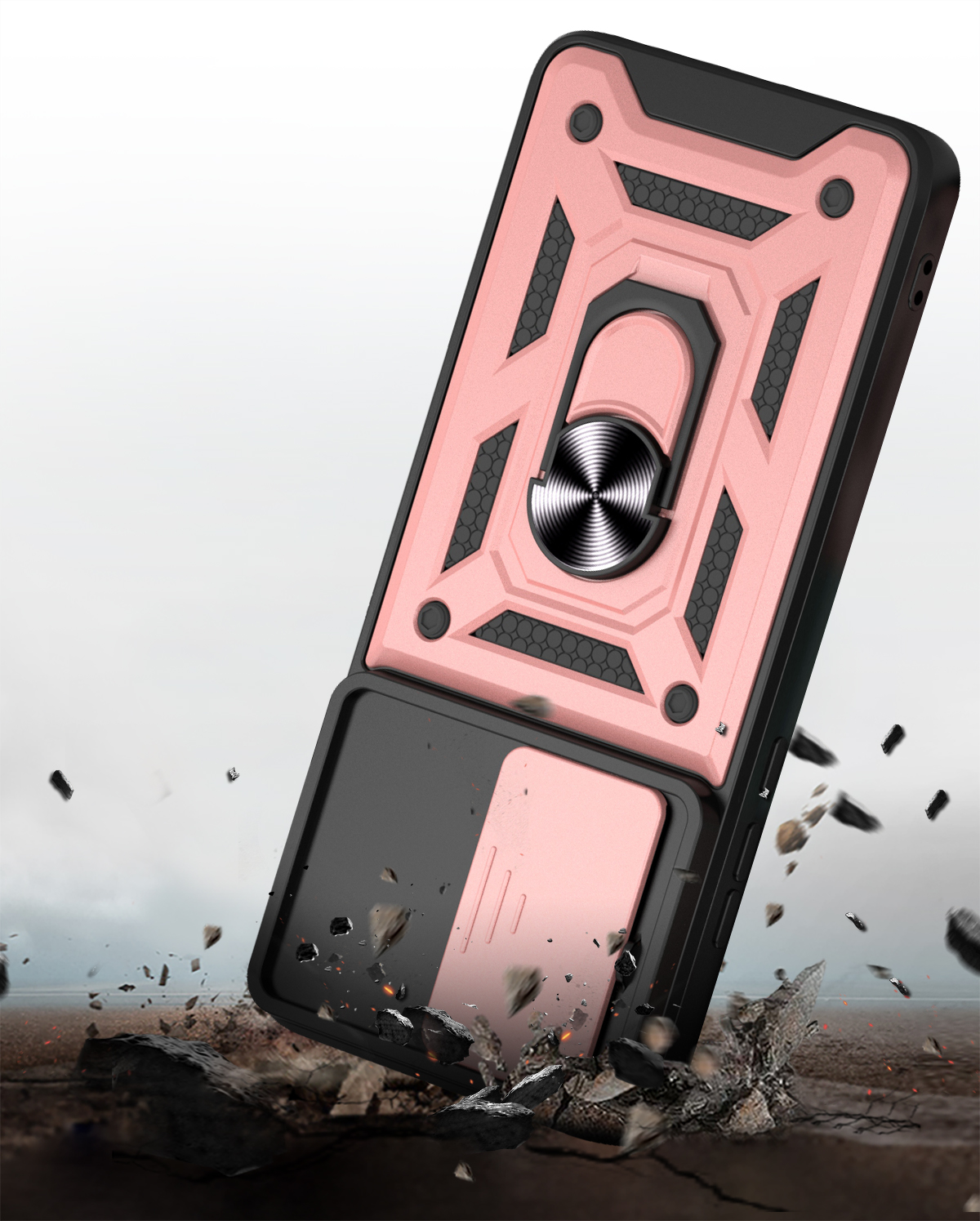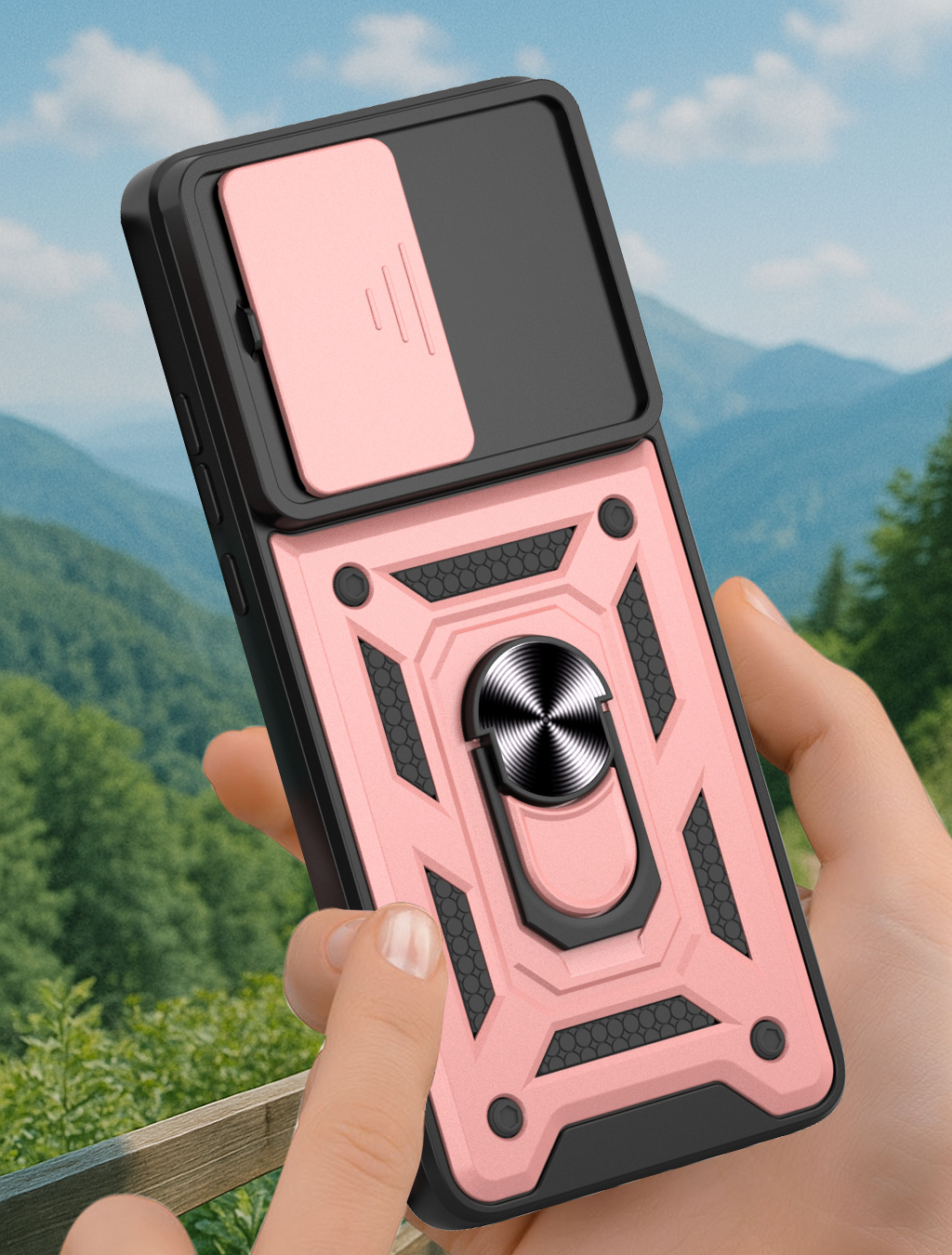Etui zostało zaprojektowane z myślą o kompleksowej ochronie urządzenia w codziennym użytkowaniu oraz w trudniejszych warunkach. Dzięki zastosowaniu dwuwarstwowej konstrukcji – twardej zewnętrznej powłoki z poliwęglanu (PC) oraz wewnętrznej warstwy z elastycznego TPU – skutecznie zmniejsza ryzyko uszkodzeń telefonu. Struktura materiału, wbudowany ring oraz antypoślizgowe detale ograniczają ryzyko wyślizgnięcia się telefonu z dłoni.