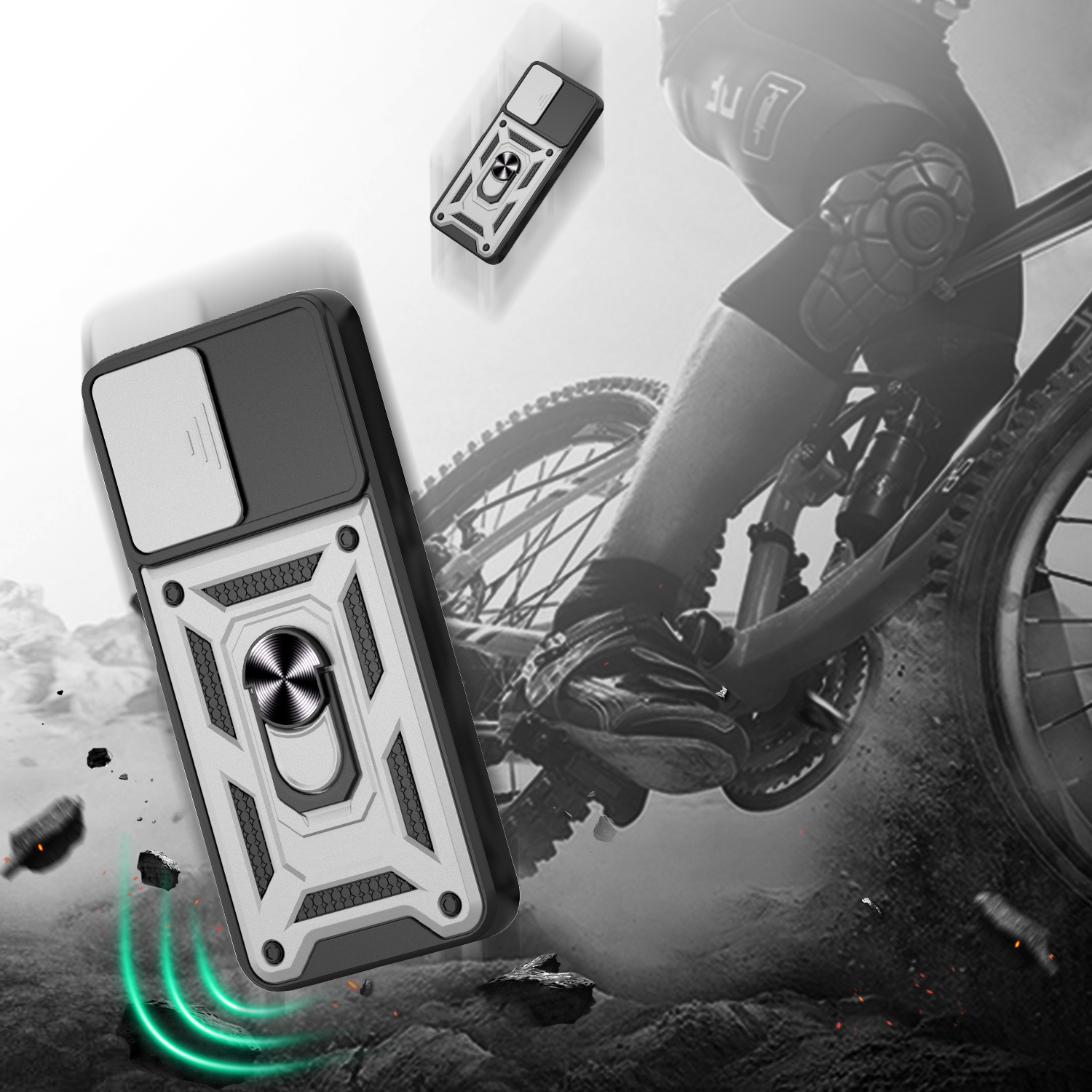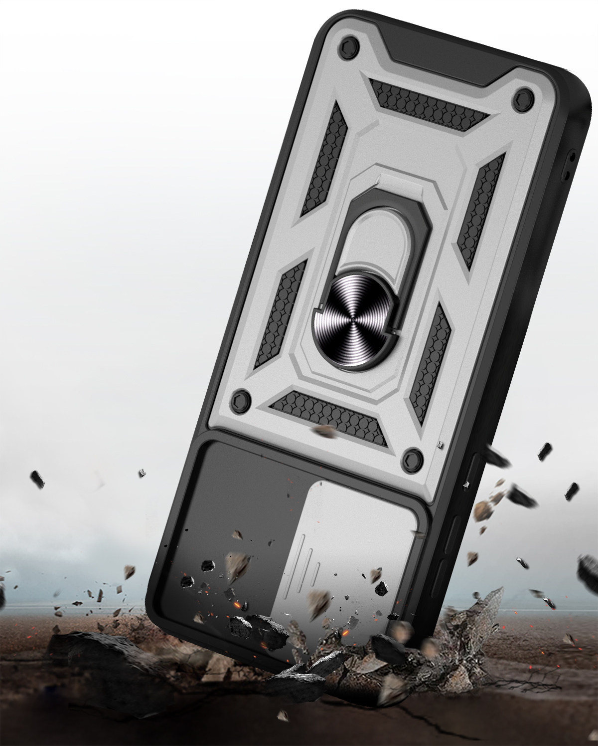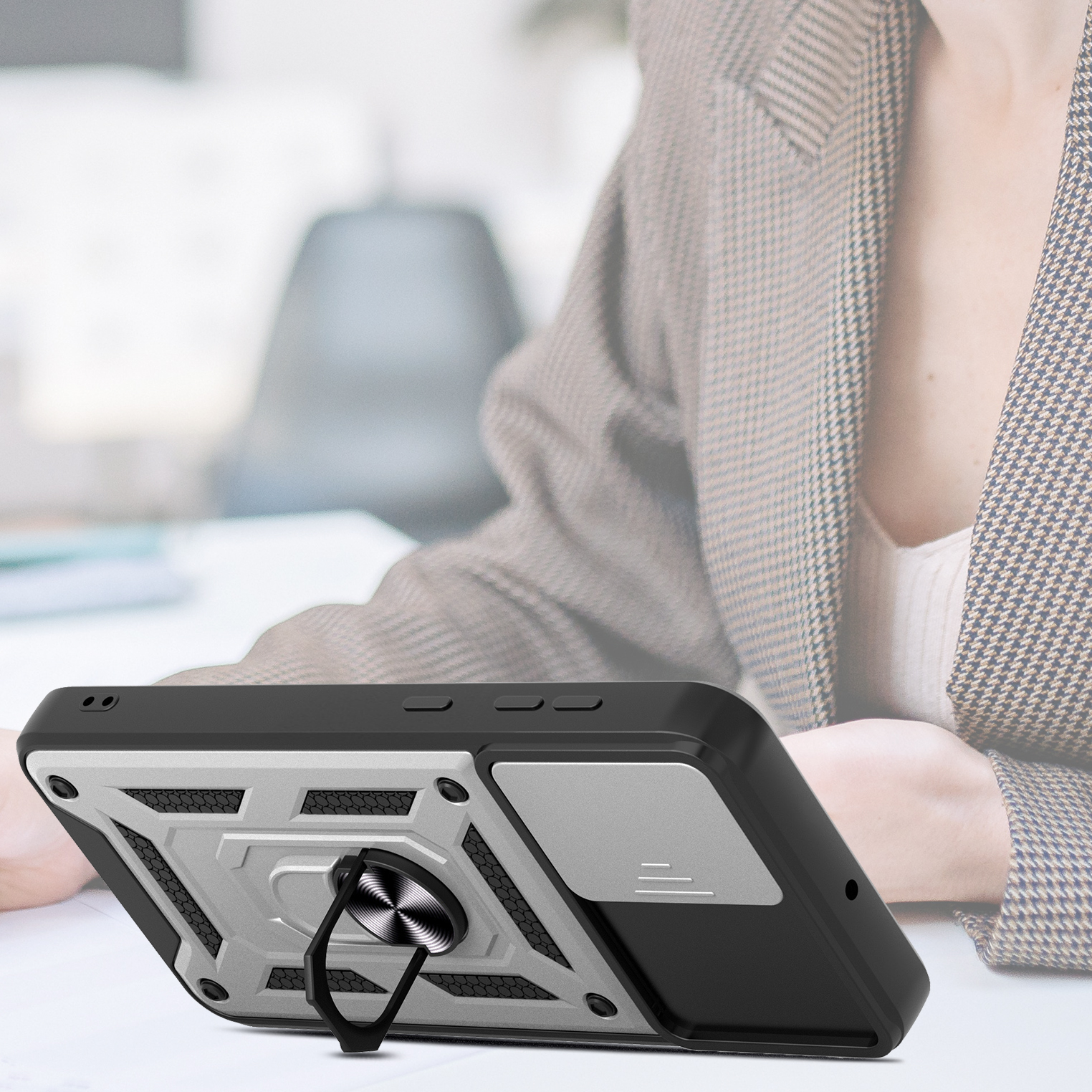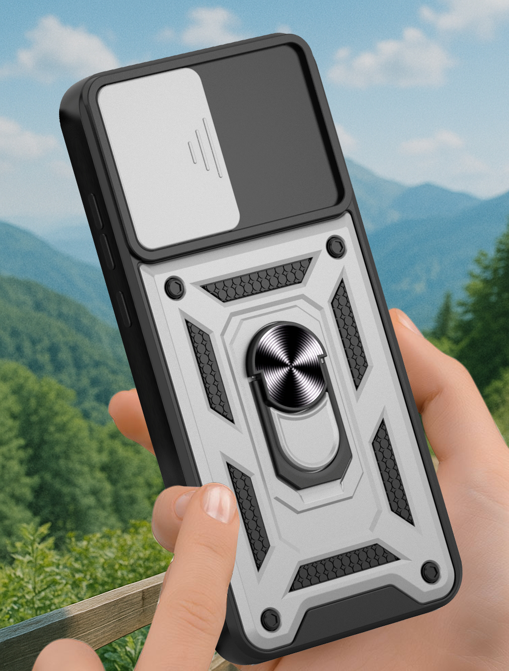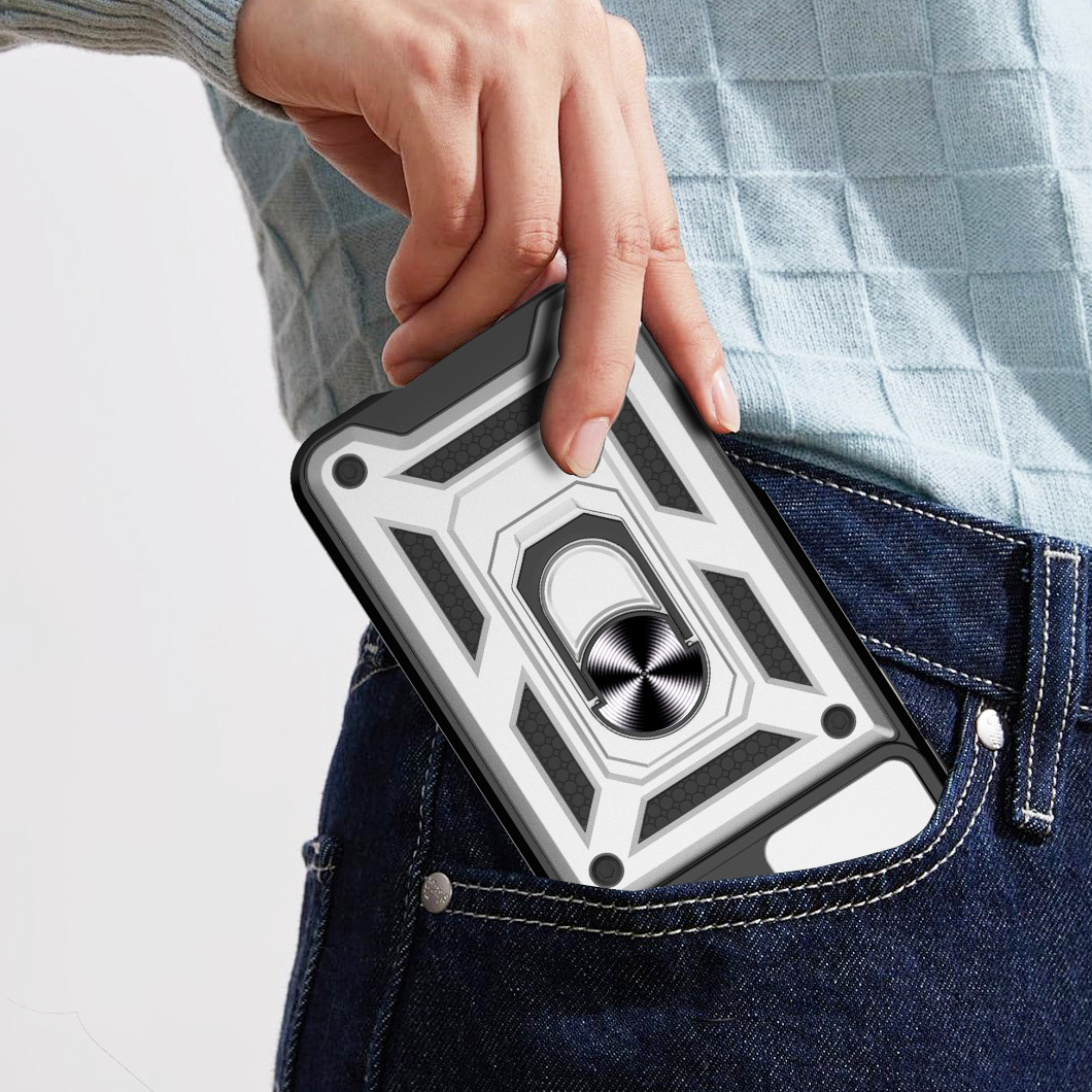 Etui zostało zaprojektowane z myślą o kompleksowej ochronie urządzenia w codziennym użytkowaniu oraz w trudniejszych warunkach. Dzięki zastosowaniu dwuwarstwowej konstrukcji – twardej zewnętrznej powłoki z poliwęglanu (PC) oraz wewnętrznej warstwy z elastycznego TPU – skutecznie zmniejsza ryzyko uszkodzeń telefonu. Struktura materiału, wbudowany ring oraz antypoślizgowe detale ograniczają ryzyko wyślizgnięcia się telefonu z dłoni.