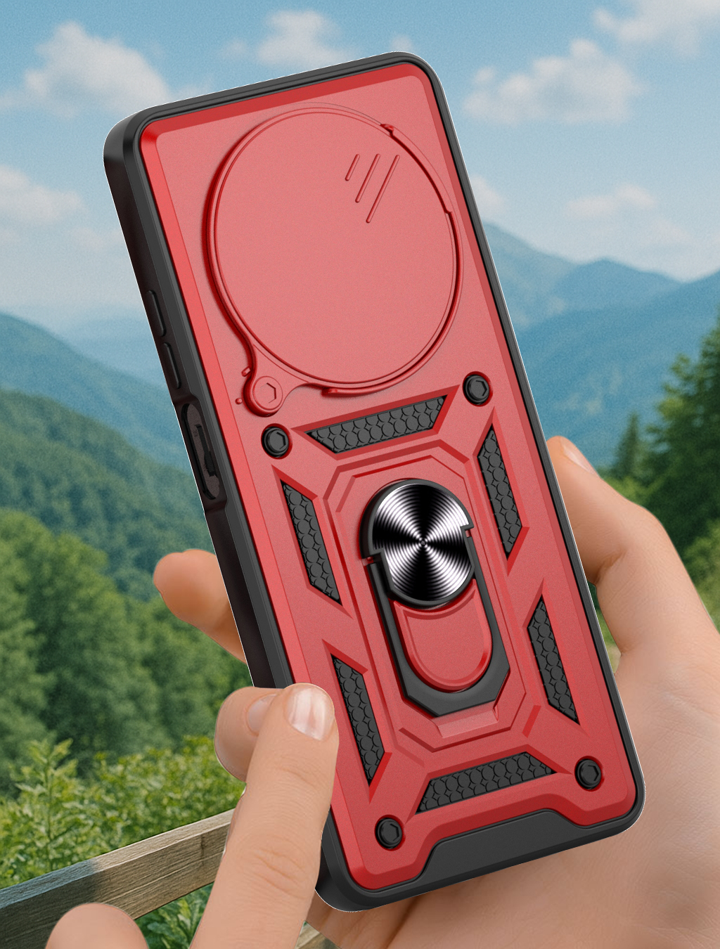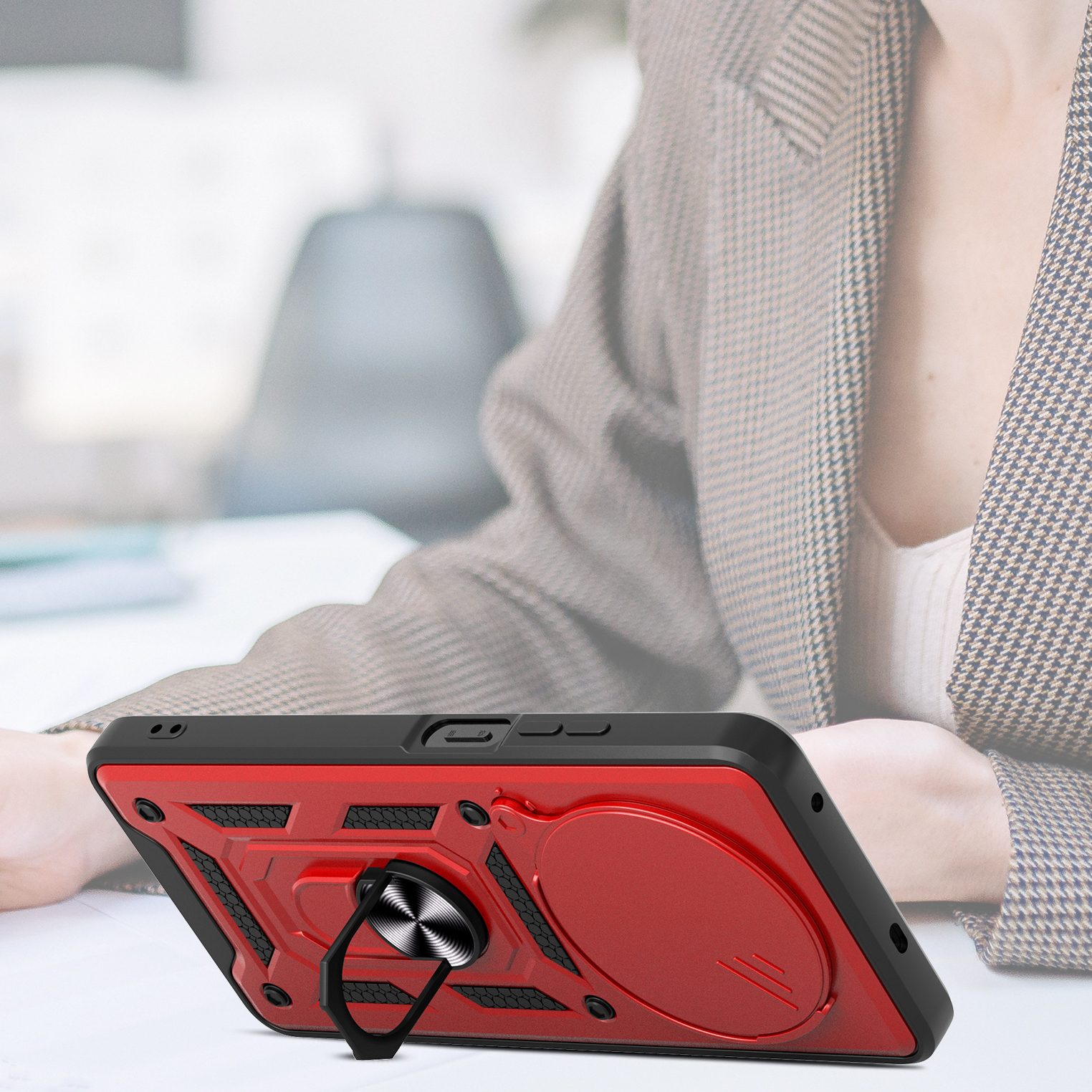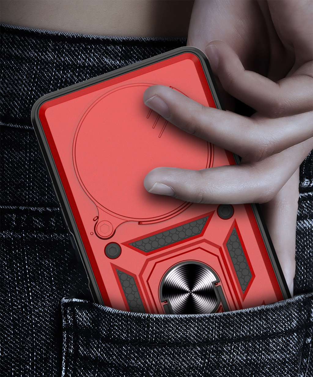 Etui zostało zaprojektowane z myślą o kompleksowej ochronie urządzenia w codziennym użytkowaniu oraz w trudniejszych warunkach. Dzięki zastosowaniu dwuwarstwowej konstrukcji – twardej zewnętrznej powłoki z poliwęglanu (PC) oraz wewnętrznej warstwy z elastycznego TPU – skutecznie zmniejsza ryzyko uszkodzeń telefonu. Struktura materiału, wbudowany ring oraz antypoślizgowe detale ograniczają ryzyko wyślizgnięcia się telefonu z dłoni.