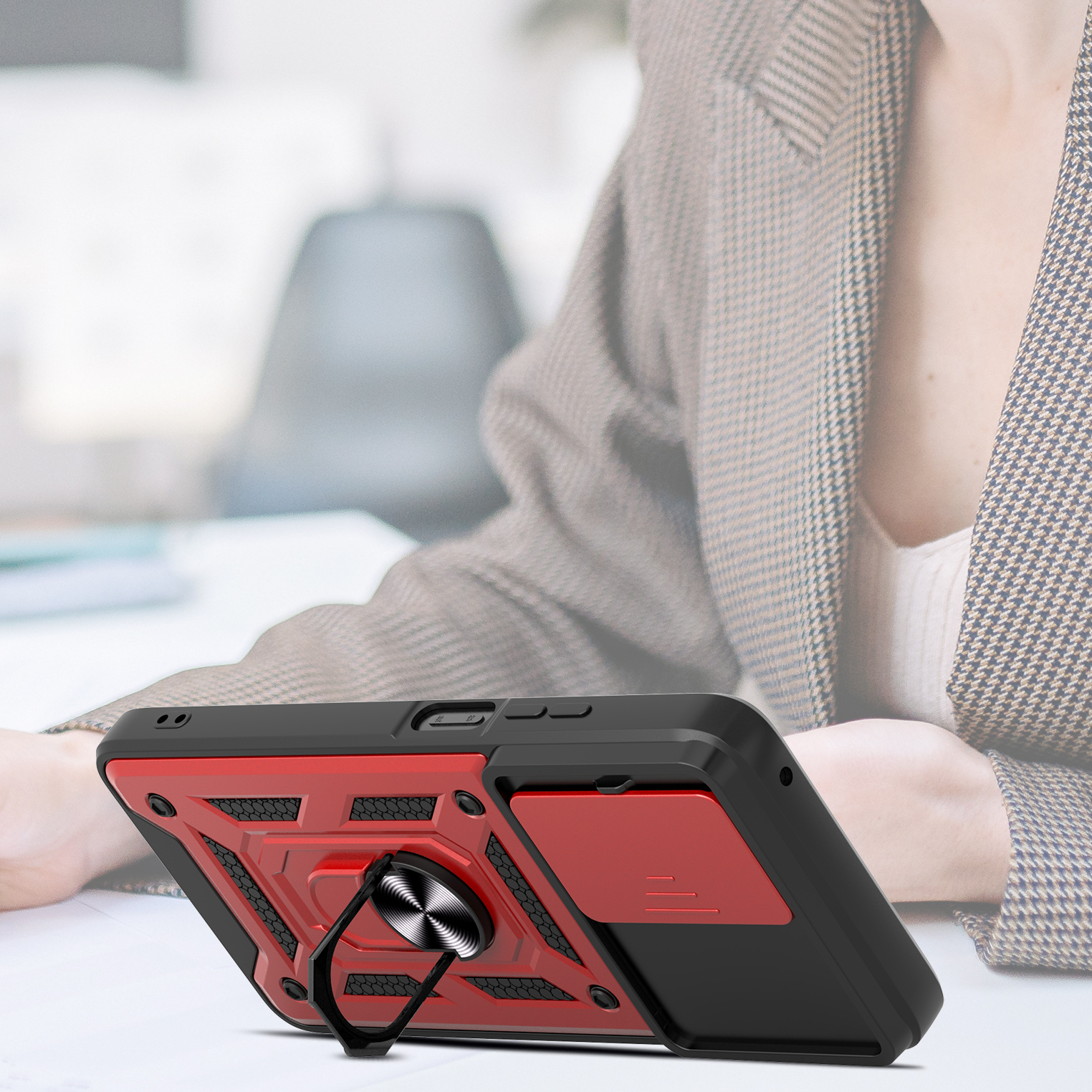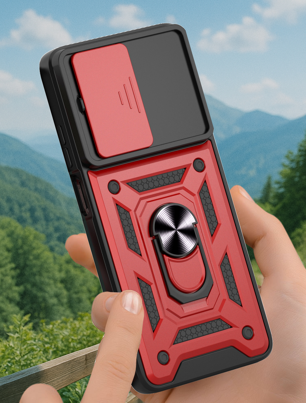 Etui zostało zaprojektowane z myślą o kompleksowej ochronie urządzenia w codziennym użytkowaniu oraz w trudniejszych warunkach. Dzięki zastosowaniu dwuwarstwowej konstrukcji – twardej zewnętrznej powłoki z poliwęglanu (PC) oraz wewnętrznej warstwy z elastycznego TPU – skutecznie zmniejsza ryzyko uszkodzeń telefonu. Struktura materiału, wbudowany ring oraz antypoślizgowe detale ograniczają ryzyko wyślizgnięcia się telefonu z dłoni.