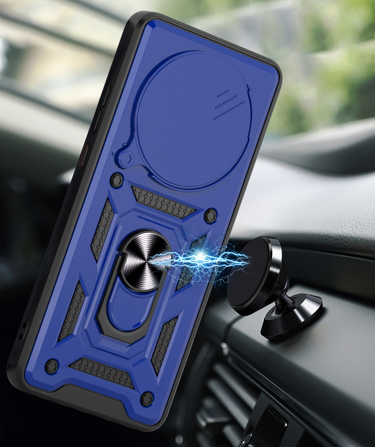 Wbudowana metalowa blaszka sprawia, że etui można łatwo zamocować do magnetycznych uchwytów samochodowych. Eliminuje to konieczność stosowania dodatkowych płytek montażowych, które często psują wygląd urządzenia.