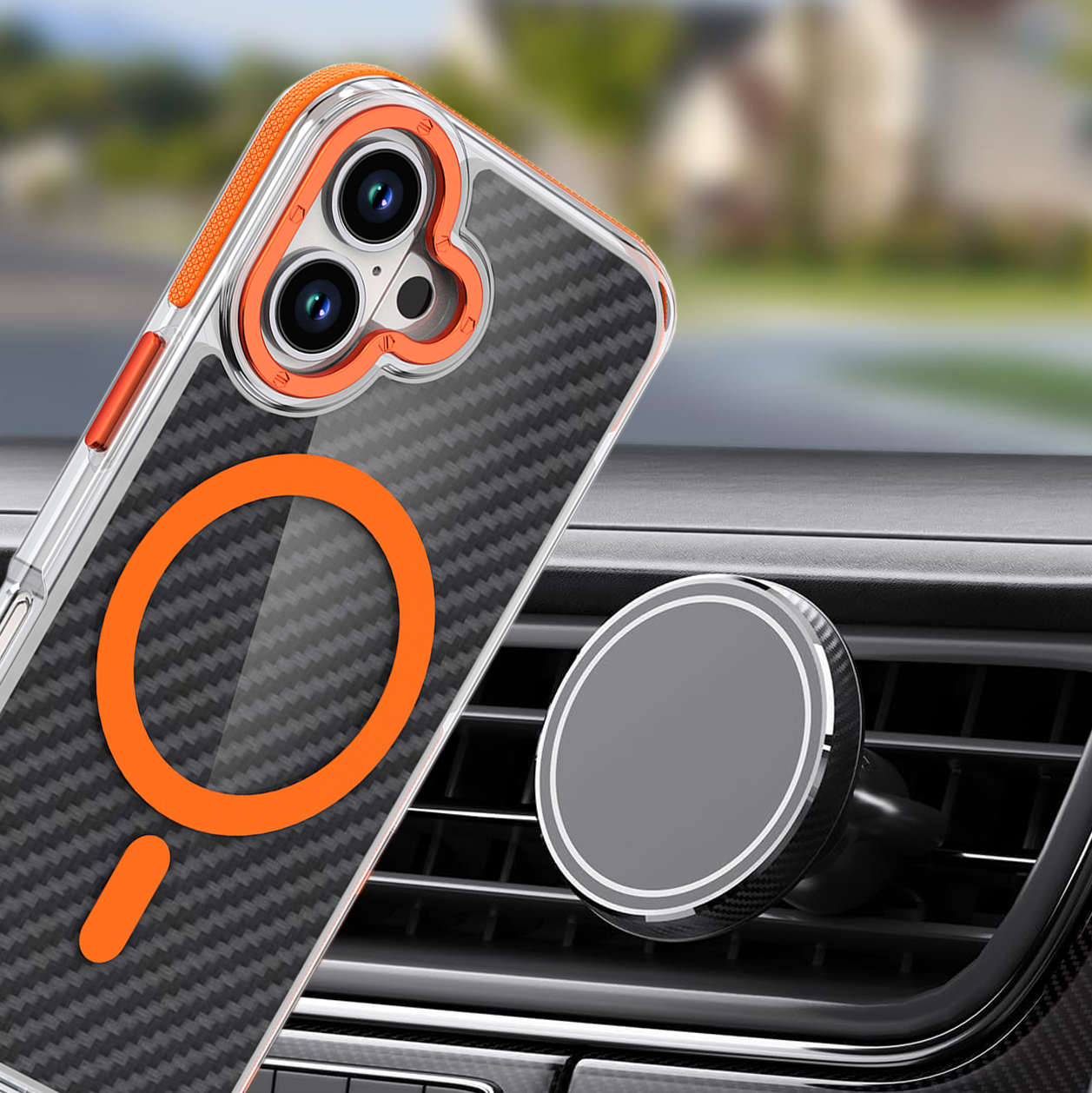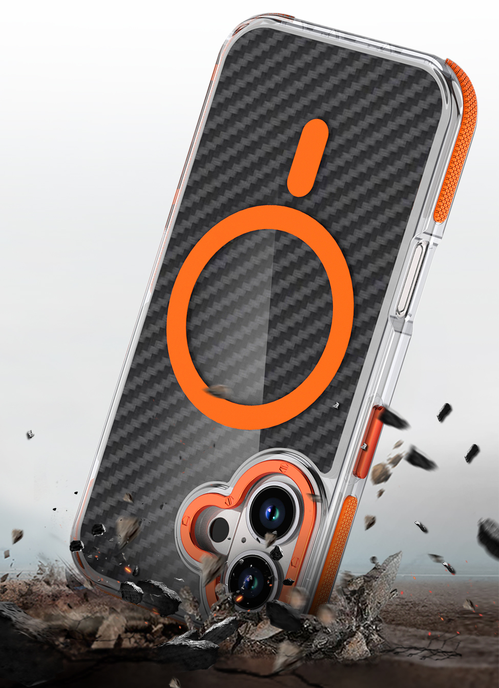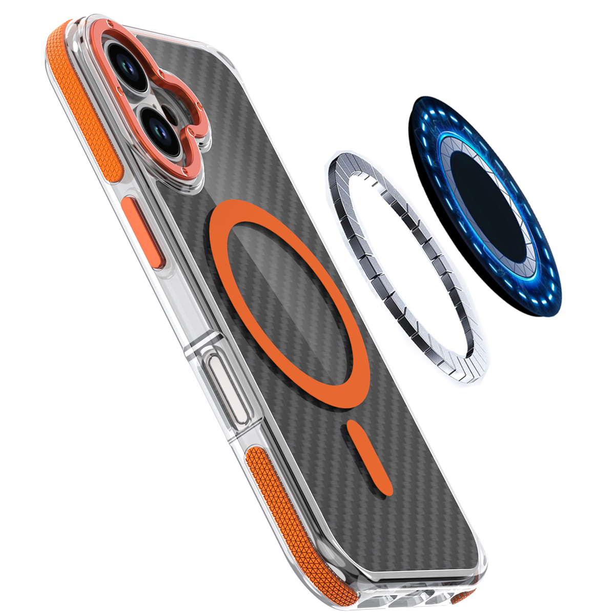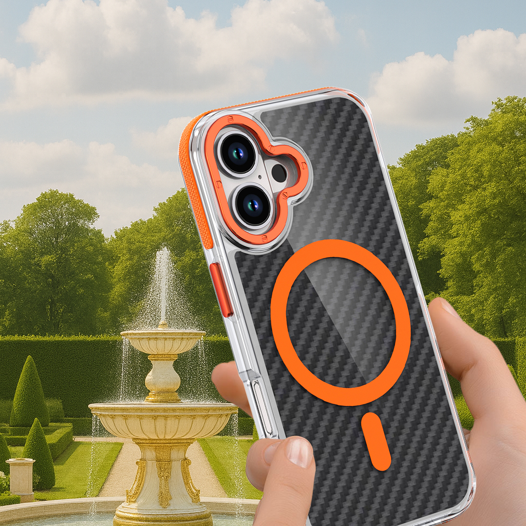 Etui Exoguard Carbon Ms - Apple Iphone 16 - Black / Orange