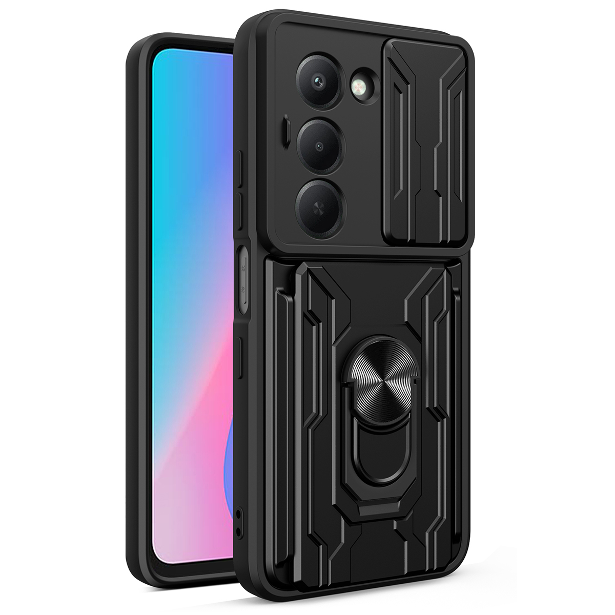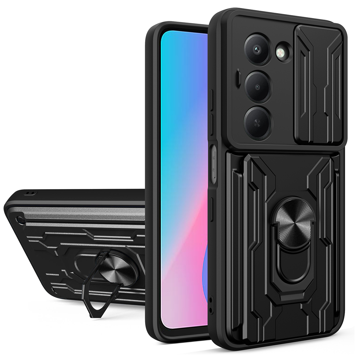 CARDSHIELD to etui, które zapewnia wysoki poziom ochrony połączony z nowoczesnym designem. Dwuwarstwowa konstrukcja z twardego poliwęglanu i elastycznego TPU zwiększa ochronę przed upadkami, zarysowaniami i codziennym zużyciem. Przesuwana osłona aparatu zabezpiecza soczewki przed uszkodzeniami i zabrudzeniami. Znajdujący się na pleckach metalowy ring z blaszką, pełni funkcję podstawki, uchwytu do wygodnego trzymania oraz mocowania do uchwytów magnetycznych w samochodzie. Zintegrowane przyciski chronią newralgiczne elementy telefonu, zachowując jednocześnie pełną funkcjonalność i wygodę użytkowania. Wyjmowana kieszonka na kartę pełni funkcję schowka, który umożliwia bezpieczne i wygodne przechowywanie kart płatniczych, dokumentów lub innych kart plastikowych bez konieczności noszenia oddzielnego portfela. Dodatkowo etui posiada dwie małe dziurki, umożliwiające przyczepienie smyczy lub zawieszki. To praktyczne rozwiązanie, które sprawdzi się zarówno na co dzień, jak i podczas wycieczek czy podróży.