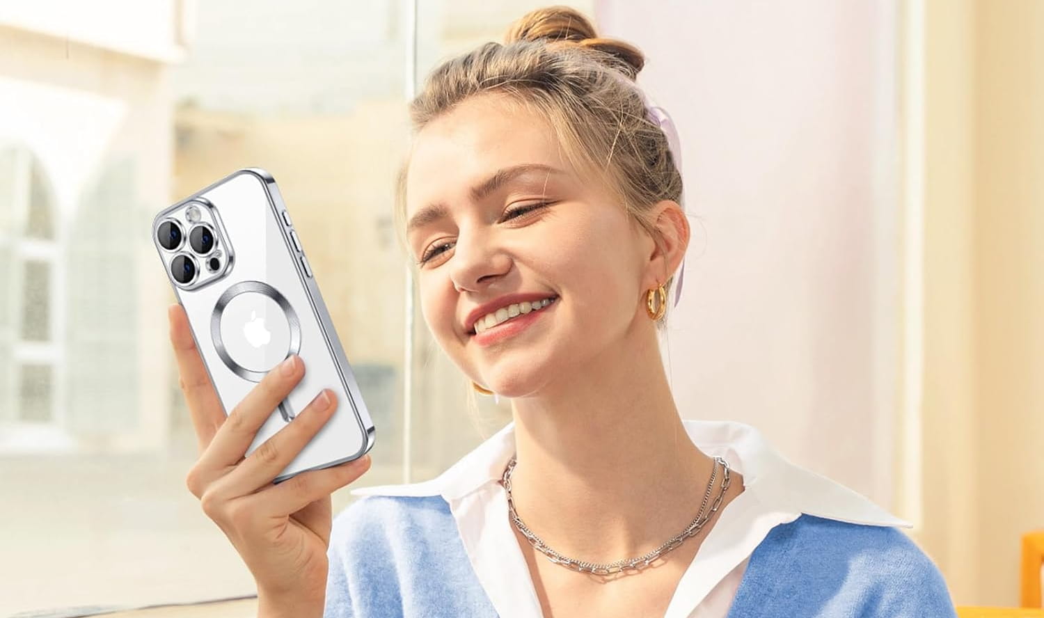 Eleganckie i smukłe etui, które jest połączeniem całkowicie przeźroczystych pleców z kolorowymi ramkami. Zapewnia dodatkową ochronę przy zachowaniu pełnej funkcjonalności telefonu. Pierścień na plecach pozwala w pełni korzystać z akcesoriów MAGSAFE. Etui posiada wbudowane osłony na obiektywy, które w razie potrzeby lub uszkodzenia, można bez problemu zdemontować.