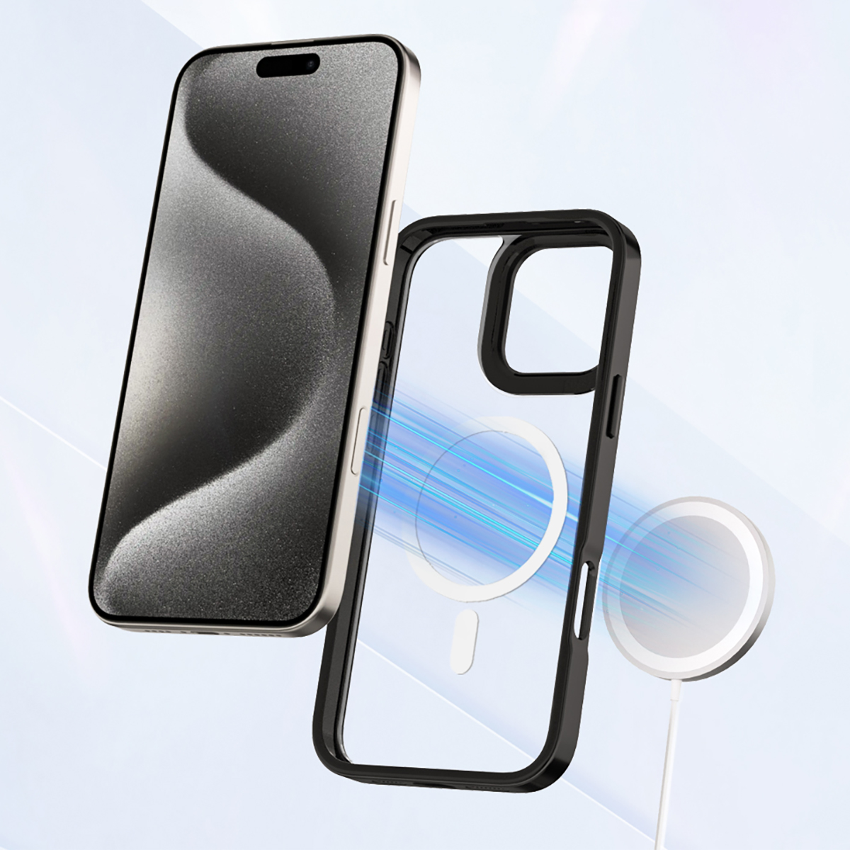 Wbudowany magnetyczny pierścień MagSafe umożliwia szybkie i pewne mocowanie akcesoriów kompatybilnych z tą technologią, takich jak ładowarki, portfele czy uchwyty samochodowe. Metalowe elementy pierścienia wbudowane w etui są odpowiednio rozmieszczone, by zapewnić idealne dopasowanie i stabilność montowanych dodatków. Pierścień MagSafe nie wpływa na codzienne użytkowanie, a same akcesoria można łatwo i szybko doczepić oraz zdemontować.