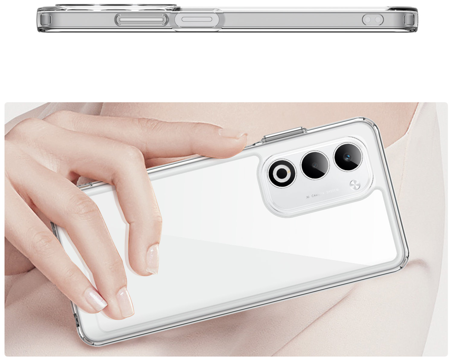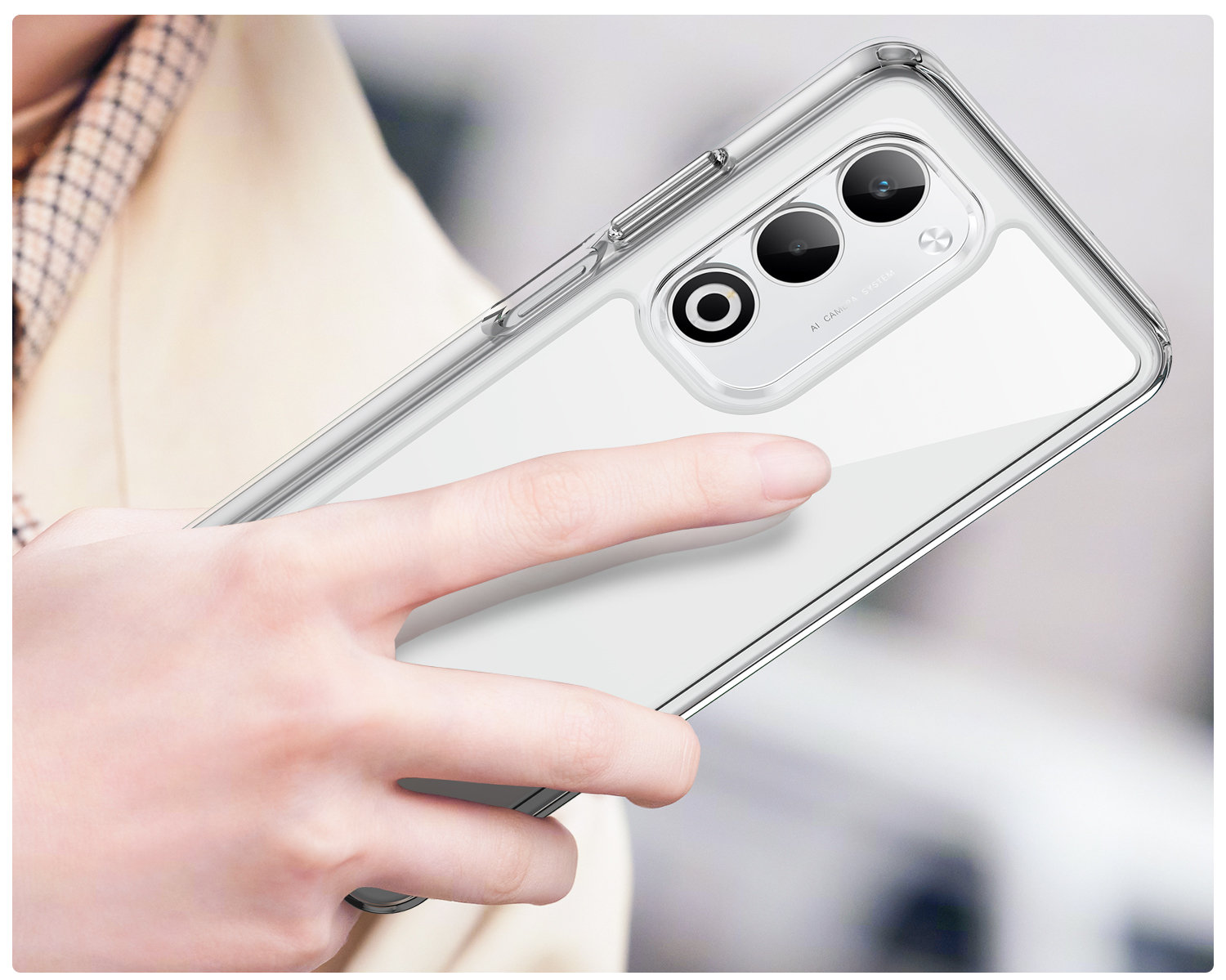 FRAMECASE to etui łączące minimalistyczny design z wysoką funkcjonalnością. Wykonane z dwóch materiałów: sztywnego akrylu i elastycznego TPU, zapewnia doskonałą trwałość i odporność na uszkodzenia. Przeźroczyste plecki chronią tył urządzenia, jednocześnie eksponując jego oryginalny wygląd. Gumowa ramka doskonale amortyzuje wstrząsy, zapewniając pewny chwyt i bezpieczeństwo w codziennym użytkowaniu. Etui zostało wyposażone w podwyższony rant wokół aparatu, który skutecznie chroni obiektyw przed zarysowaniami przy położeniu telefonu na płaskiej powierzchni. Wbudowane srebrne przyciski zapewniają łatwy dostęp do wszystkich funkcji telefonu, dodając eleganckiego akcentu. To etui to idealna opcja dla osób szukających skutecznej ochrony i minimalistycznego wyglądu.>