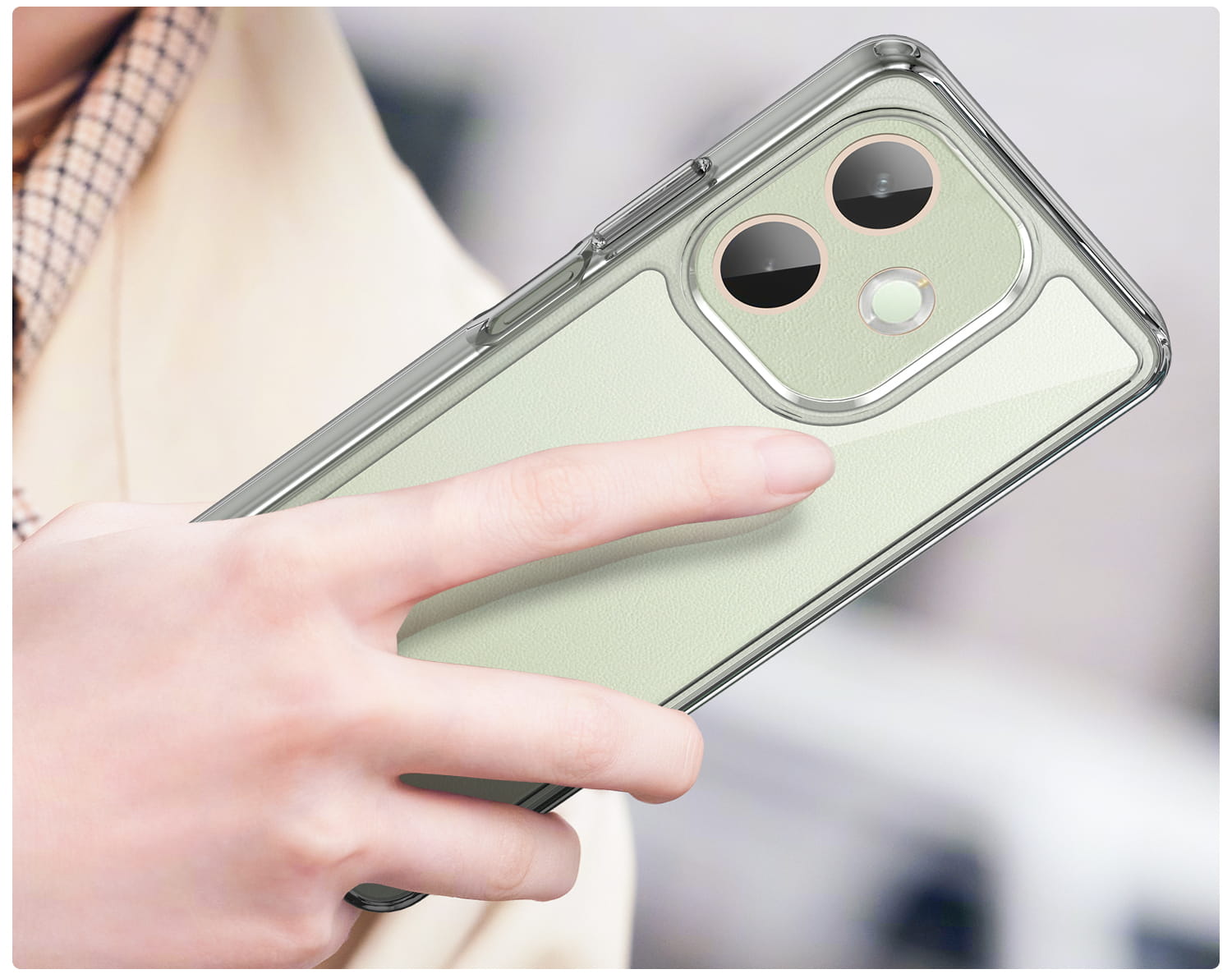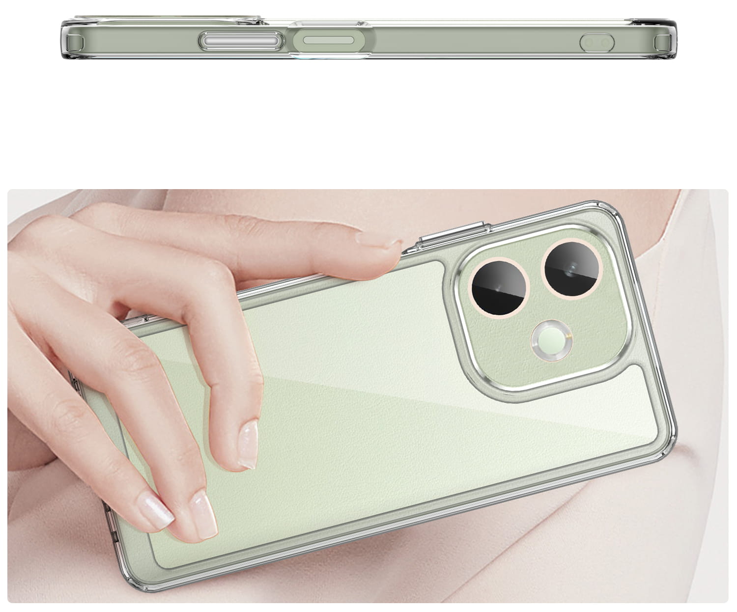 FRAMECASE to etui łączące minimalistyczny design z wysoką funkcjonalnością. Wykonane z dwóch materiałów: sztywnego akrylu i elastycznego TPU, zapewnia doskonałą trwałość i odporność na uszkodzenia. Przeźroczyste plecki chronią tył urządzenia, jednocześnie eksponując jego oryginalny wygląd. Gumowa ramka doskonale amortyzuje wstrząsy, zapewniając pewny chwyt i bezpieczeństwo w codziennym użytkowaniu. Etui zostało wyposażone w podwyższony rant wokół aparatu, który skutecznie chroni obiektyw przed zarysowaniami przy położeniu telefonu na płaskiej powierzchni. Wbudowane srebrne przyciski zapewniają łatwy dostęp do wszystkich funkcji telefonu, dodając eleganckiego akcentu. To etui to idealna opcja dla osób szukających skutecznej ochrony i minimalistycznego wyglądu.>