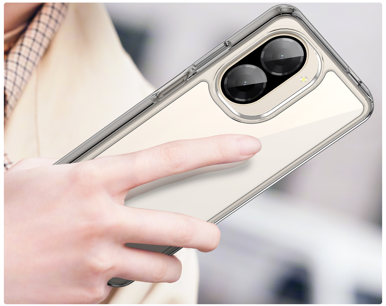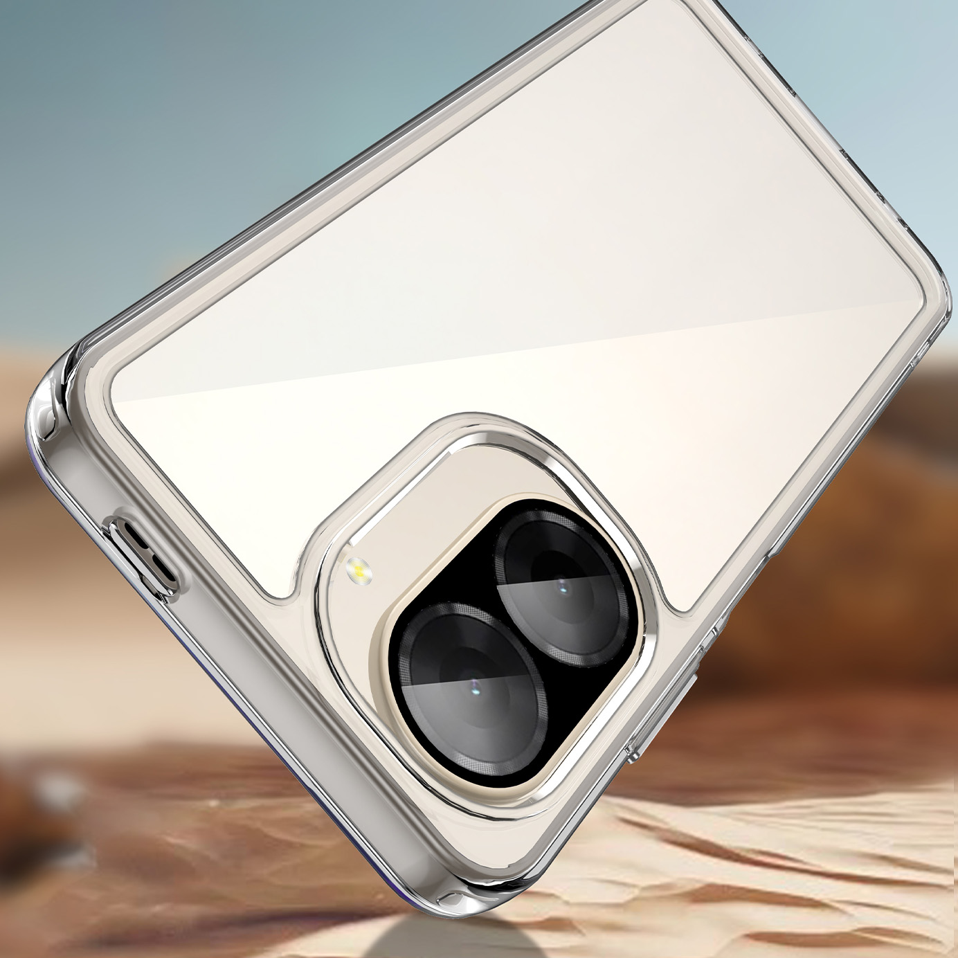 FRAMECASE to etui łączące minimalistyczny design z wysoką funkcjonalnością. Wykonane z dwóch materiałów: sztywnego akrylu i elastycznego TPU, zapewnia doskonałą trwałość i odporność na uszkodzenia. Przeźroczyste plecki chronią tył urządzenia, jednocześnie eksponując jego oryginalny wygląd. Gumowa ramka doskonale amortyzuje wstrząsy, zapewniając pewny chwyt i bezpieczeństwo w codziennym użytkowaniu. Etui zostało wyposażone w podwyższony rant wokół aparatu, który skutecznie chroni obiektyw przed zarysowaniami przy położeniu telefonu na płaskiej powierzchni. Wbudowane srebrne przyciski zapewniają łatwy dostęp do wszystkich funkcji telefonu, dodając eleganckiego akcentu. To etui to idealna opcja dla osób szukających skutecznej ochrony i minimalistycznego wyglądu.>
