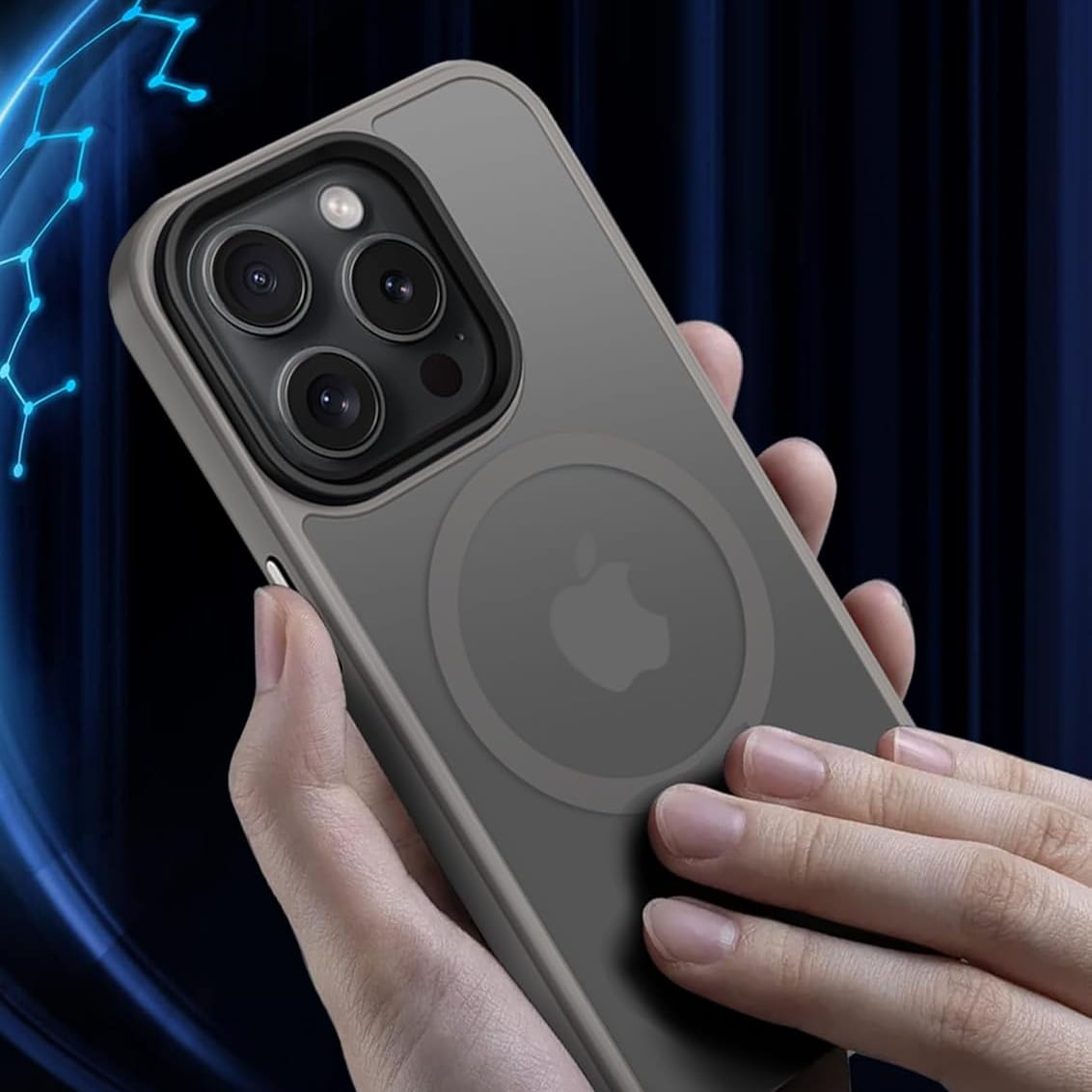 Ochronne etui składające się z dwóch materiałów: TPU (utwardzana guma) - ramka oraz twardego poliwęglanu, pokrytego warstwą antypoślizgową - matowe plecy. Zapewnia to świetną ochronę przy zachowaniu pełnej funkcjonalności. Etui umożliwia także współpracę z akcesoriami MAGSAFE.