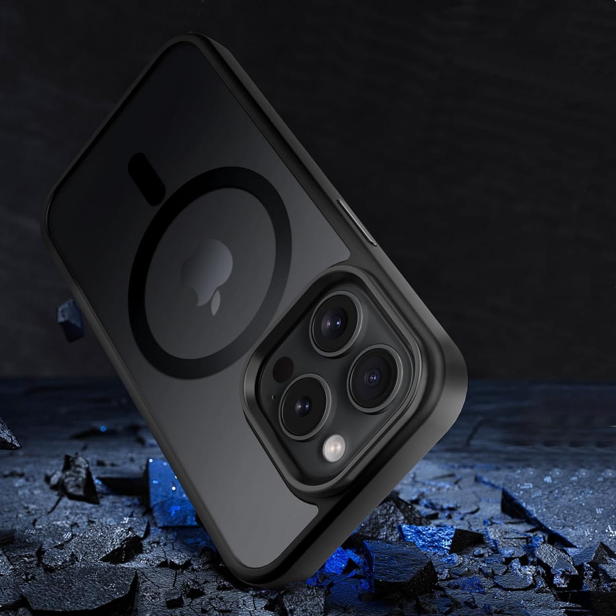 Ochronne etui składające się z dwóch materiałów: TPU (utwardzana guma) - ramka oraz twardego poliwęglanu, pokrytego warstwą antypoślizgową - matowe plecy. Zapewnia to świetną ochronę przy zachowaniu pełnej funkcjonalności. Etui umożliwia także współpracę z akcesoriami MAGSAFE.