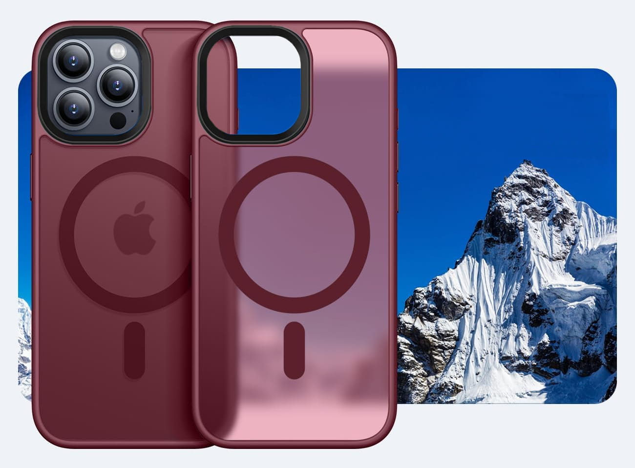 Ochronne etui składające się z dwóch materiałów: TPU (utwardzana guma) - ramka oraz twardego poliwęglanu, pokrytego warstwą antypoślizgową - matowe plecy. Zapewnia to świetną ochronę przy zachowaniu pełnej funkcjonalności. Etui umożliwia także współpracę z akcesoriami MAGSAFE.
